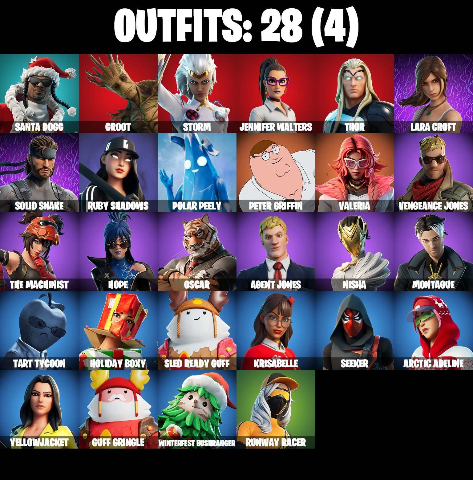 [ALL PLATFORMS] ⚡ 28 SKINS 💎 HOT MARAT 💜 LARA CROFT 💜 JENNIFER WALTERS 💜 THOR 💜 STORM 💜 RUBY SHADOWS 💜 POLAR PEELY 💜 TART TYCOON ⚡ FULL ACCESS