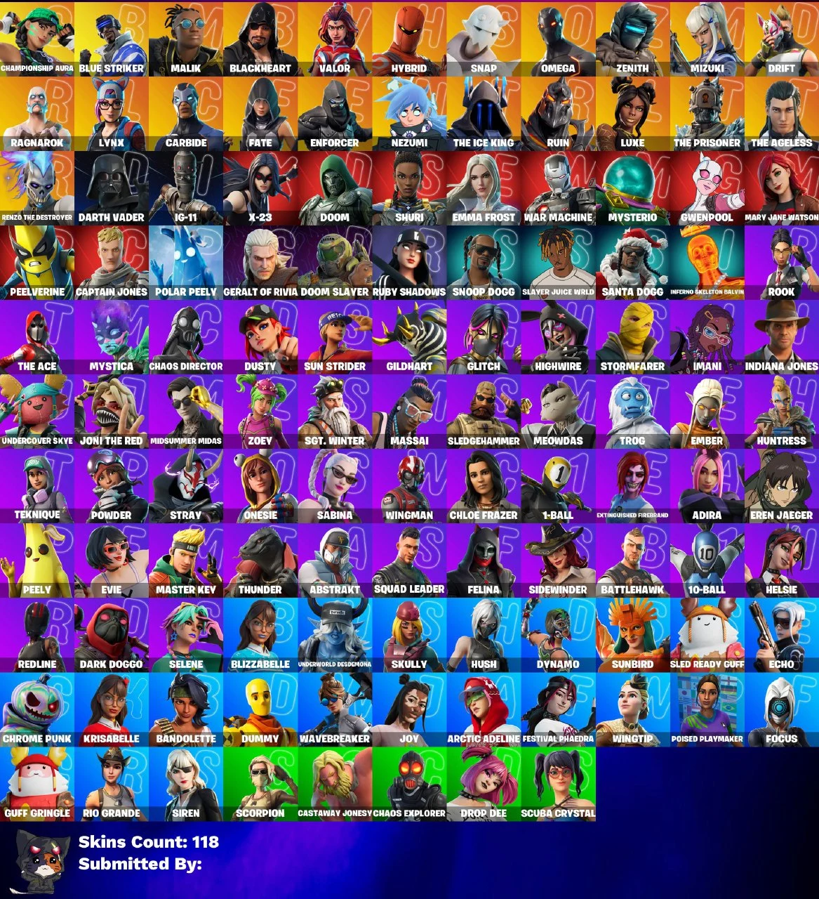 ๐ฅ๐ LIMITED OFFER ๐๐ฅ 118 SKINS ๐ CHAMPIONSHIP AURA ๐ BLUE STRIKER ๐ MALIK ๐ BLACKHEART ๐ VALOR ๐ HYBRID ๐ SNAP ๐ OMEGA ๐ ZENITH ๐ MIZUKI ๐ DRIFT ๐ RAGNAROK ๐ LYNX ๐ CARBIDE ๐ FATE ๐ ENFORCER ๐ NEZUMI ๐ THE ICE KING ๐ RUIN ๐ LUXE ๐ 650 VB ๐ FULL ACCESS ๐