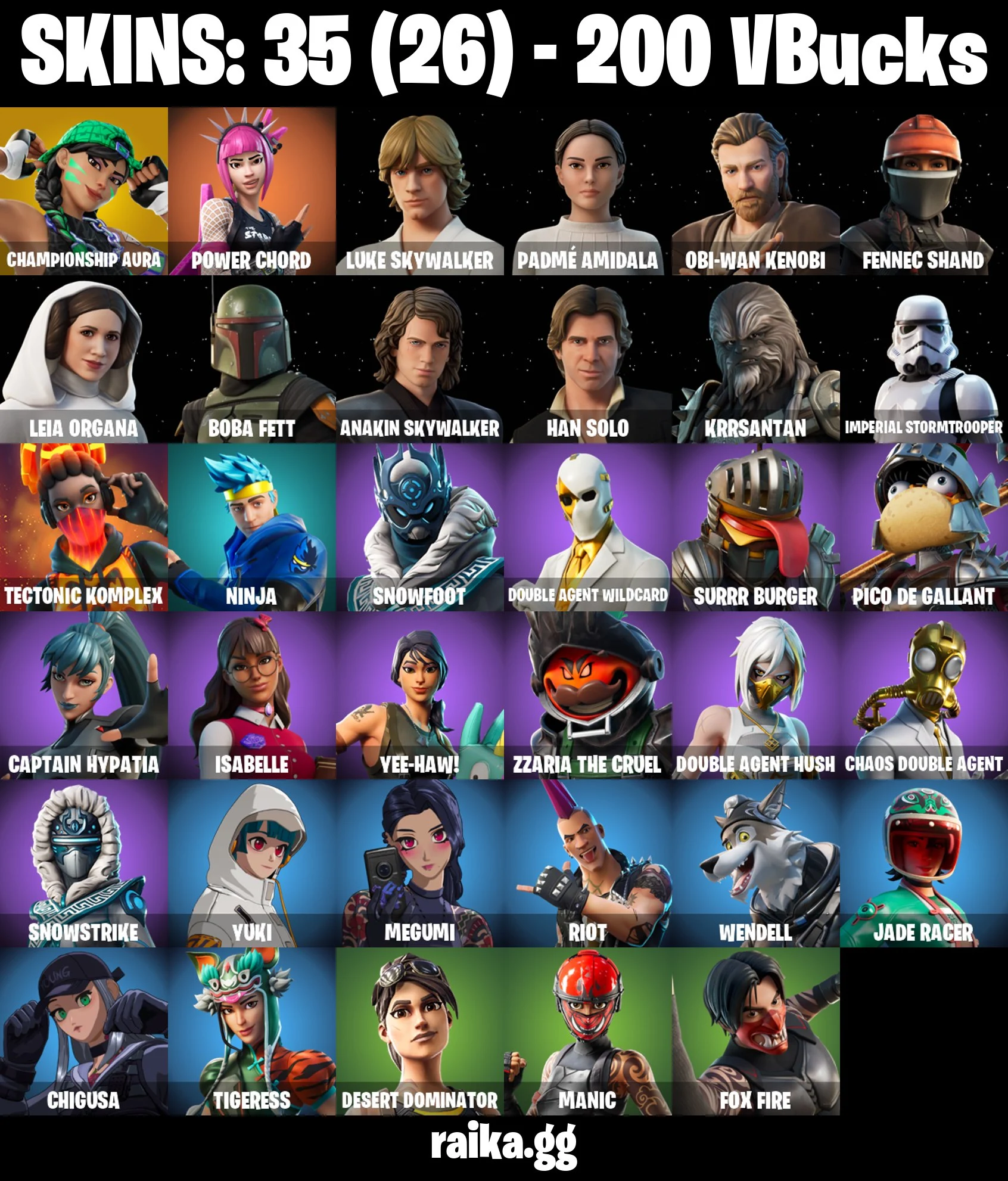 Original Email ✅ Inactive for 3 years | 35 skins | Championship Aura | Power Chord | Luke Skywalker | Padmé Amidala | Obi-Wan Kenobi | Fennec Shand | Leia Organa | Boba Fett | 200 VB