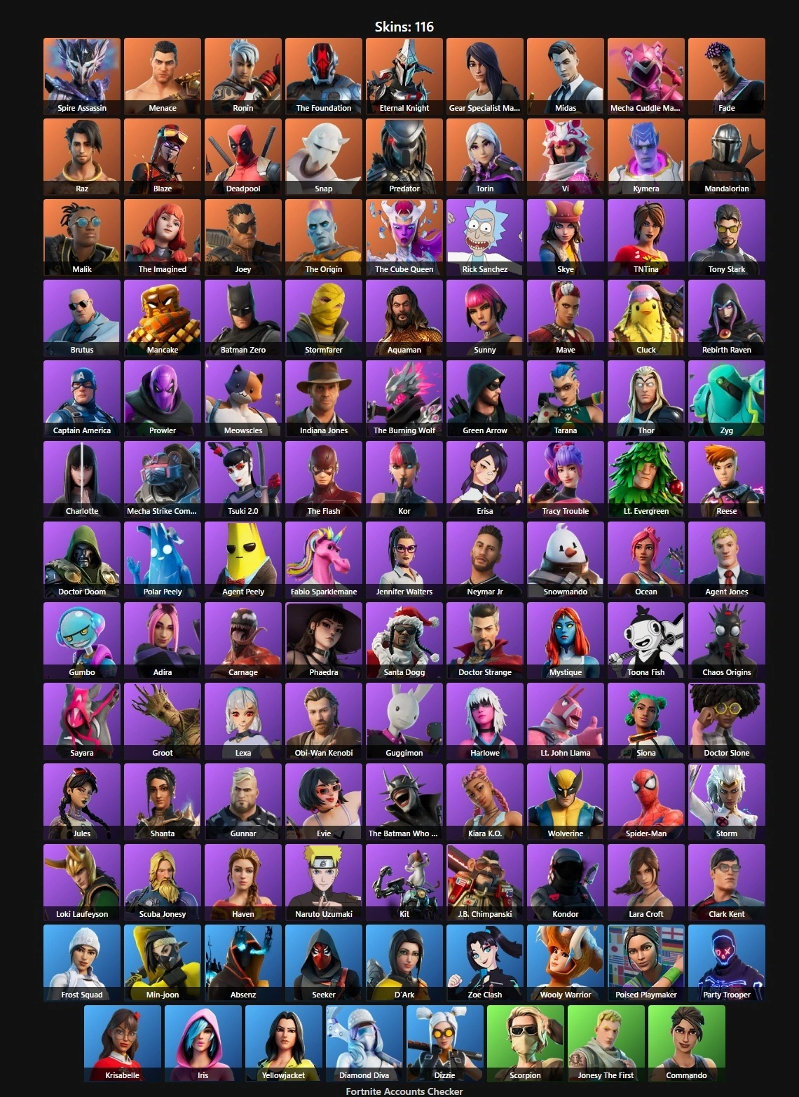 PC 116 Skins⚡ | Midas | Deadpool | Lara Croft | Spire Assassin | Menace | Ronin | The Foundation | Eternal Knight | Gear Specialist Maya