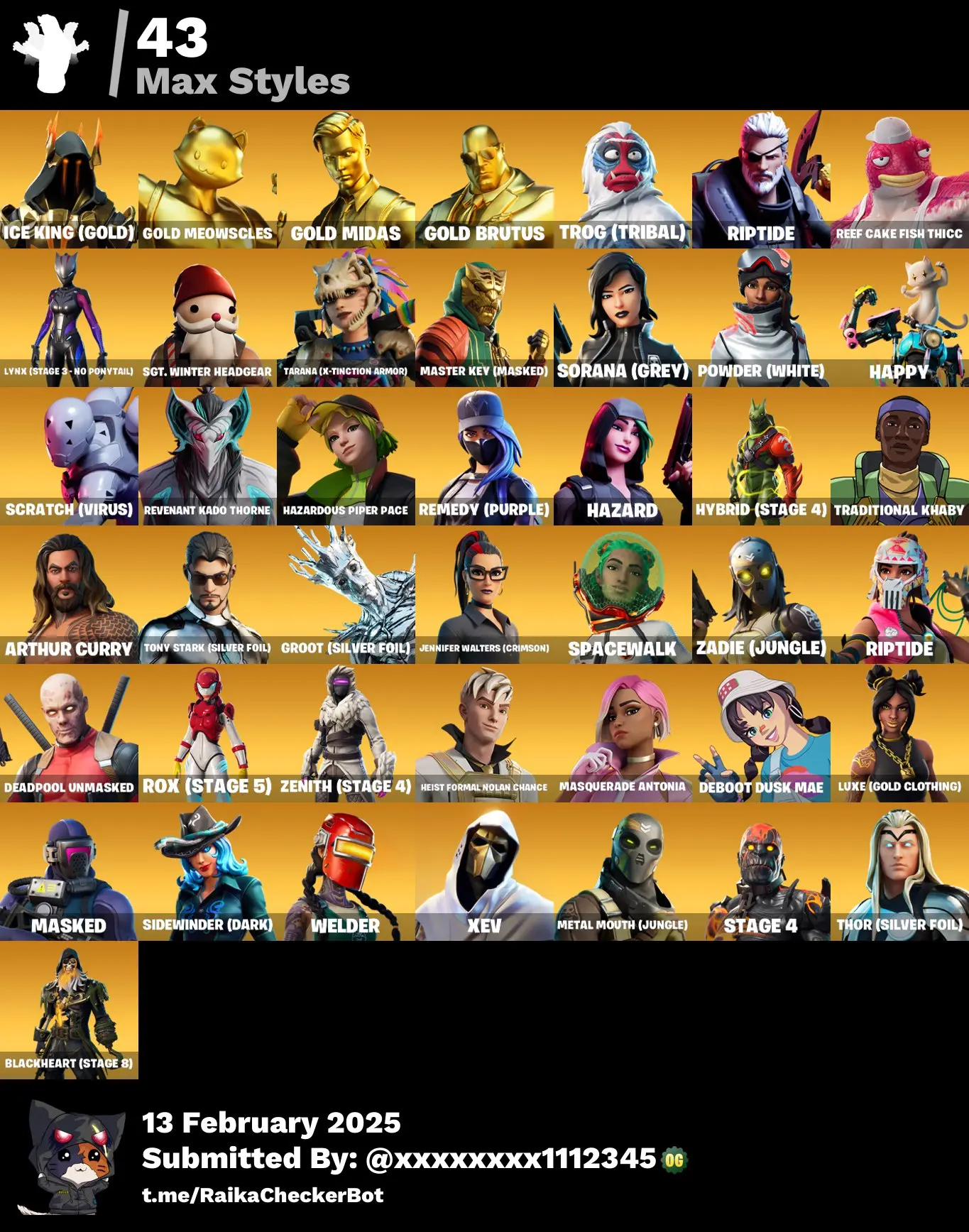 118 skins | Blue Team Leader | Gold Meowscles | Gold Midas | Gold Brutus | Cloud Striker | Prodigy | Rogue Agent | Sultura | Point Patroller | 750 VB