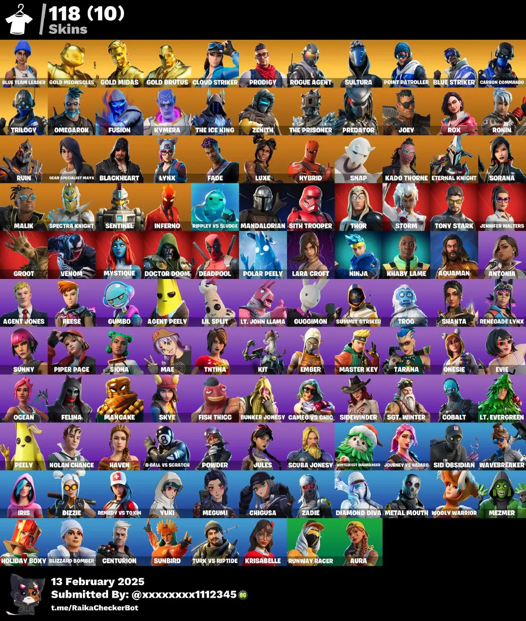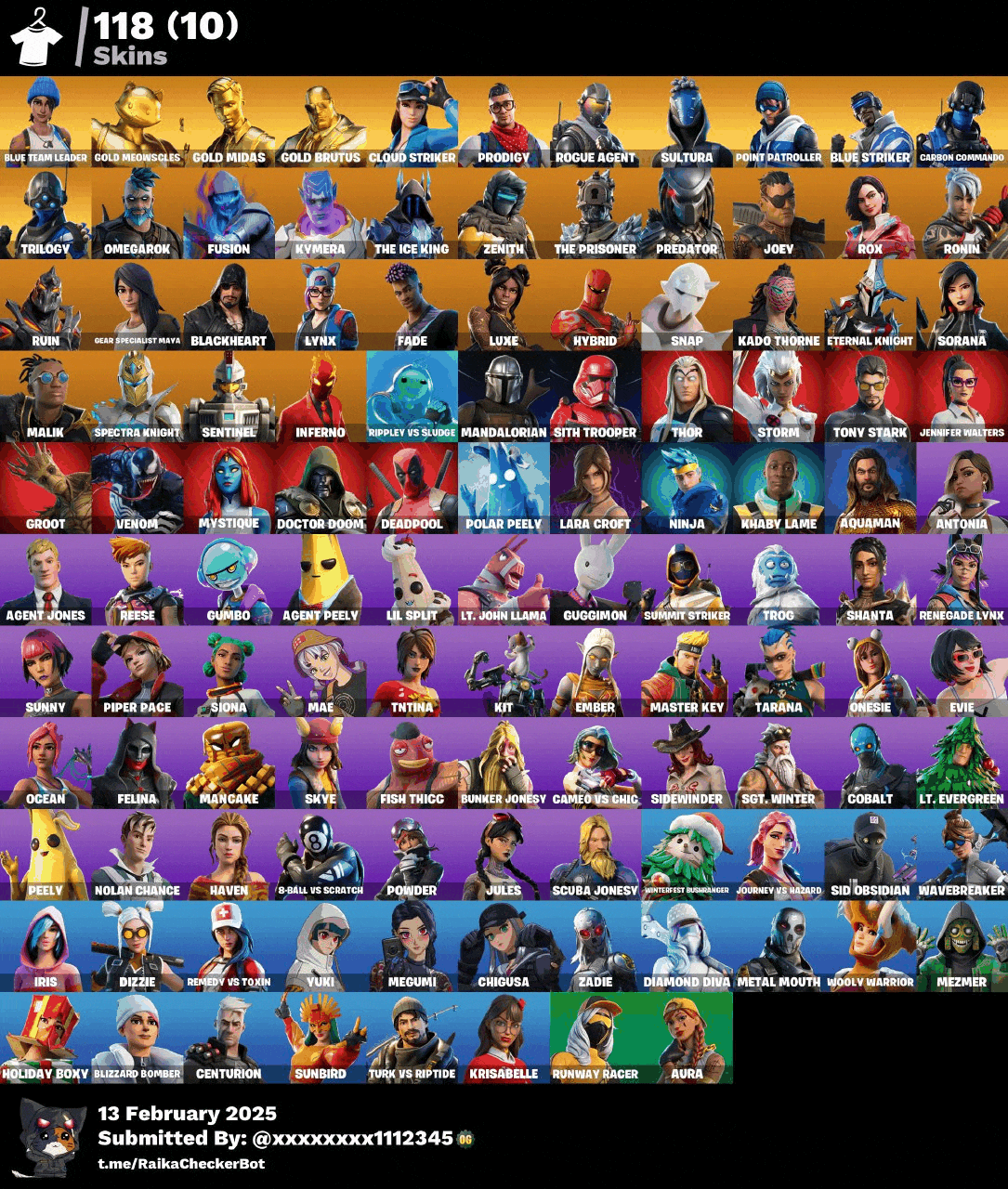 118 skins | Blue Team Leader | Gold Meowscles | Gold Midas | Gold Brutus | Cloud Striker | Prodigy | Rogue Agent | Sultura | Point Patroller | 750 VB