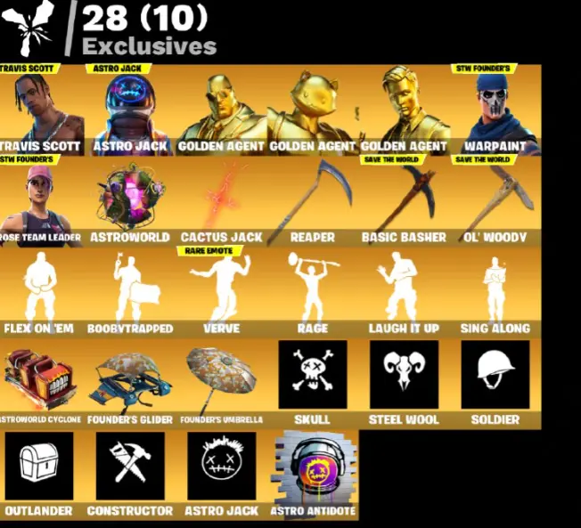 [PC] 127 skins | OG STW | Travis Scott | Astro Jack | Gold Brutus | Gold Meowscles | Gold Midas | The Scientist | Fusion | Gear Specialist Maya | 1650 VB