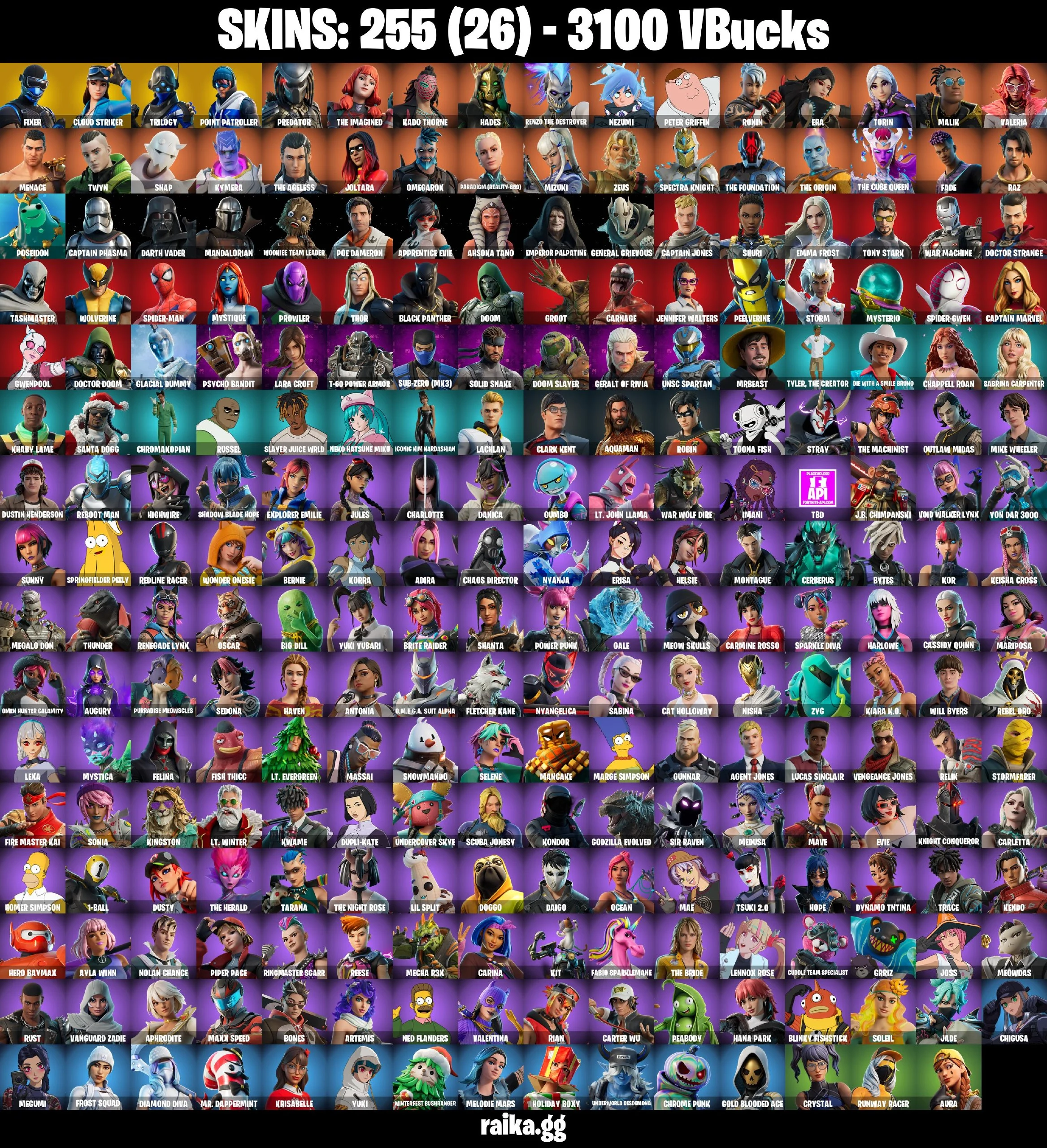 [PC] 💻 255 Skins👕 | Fixer🔵 | Cloud Striker☁️ | Trilogy⚡ | Point Patroller🎯 | Predator👽 | The Imagined🔥 | Hades👑 Darth Vader⚫ | Spider-Man🕷️ | 19 Exclusives🔥 | 3100 VBucks💸