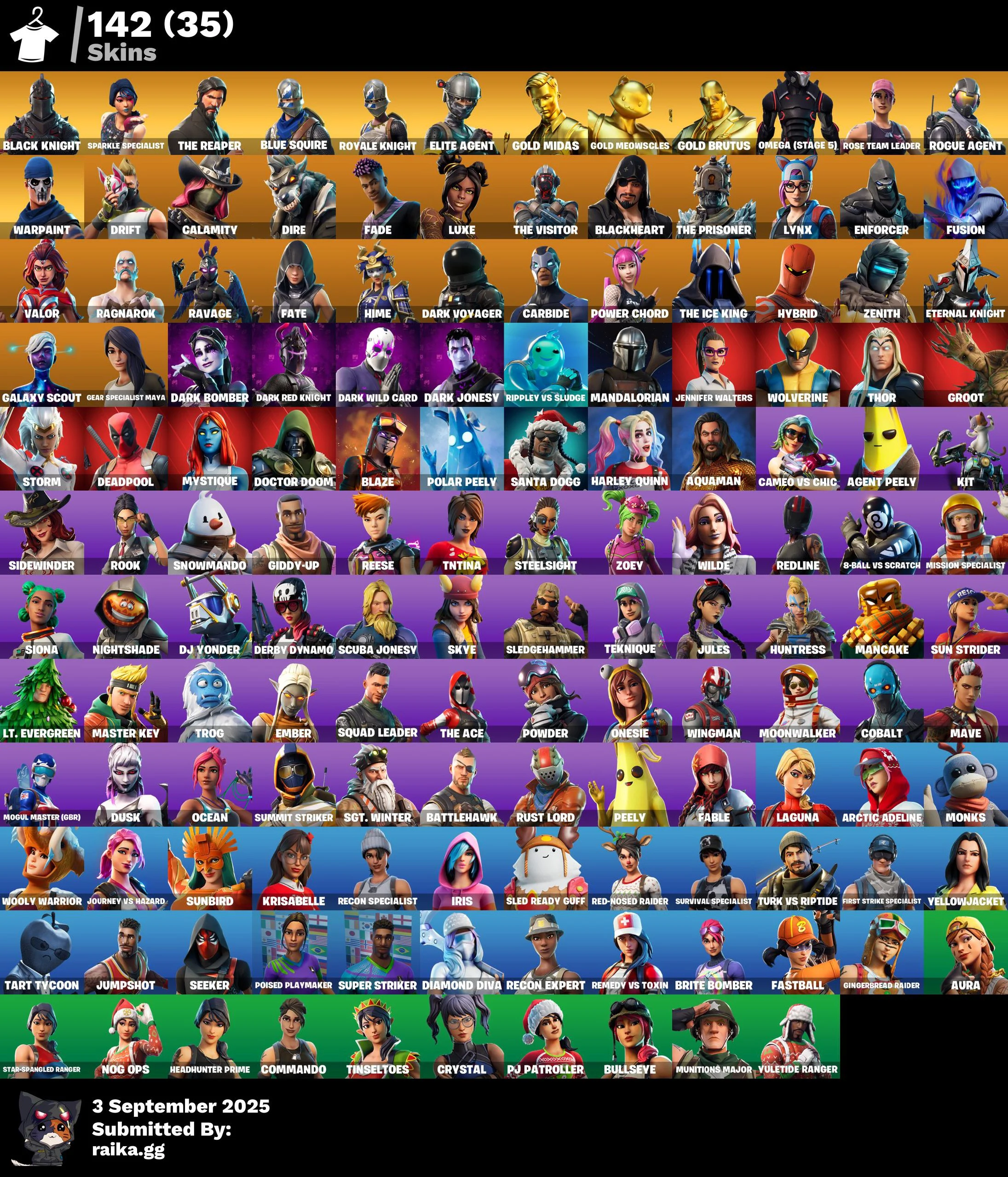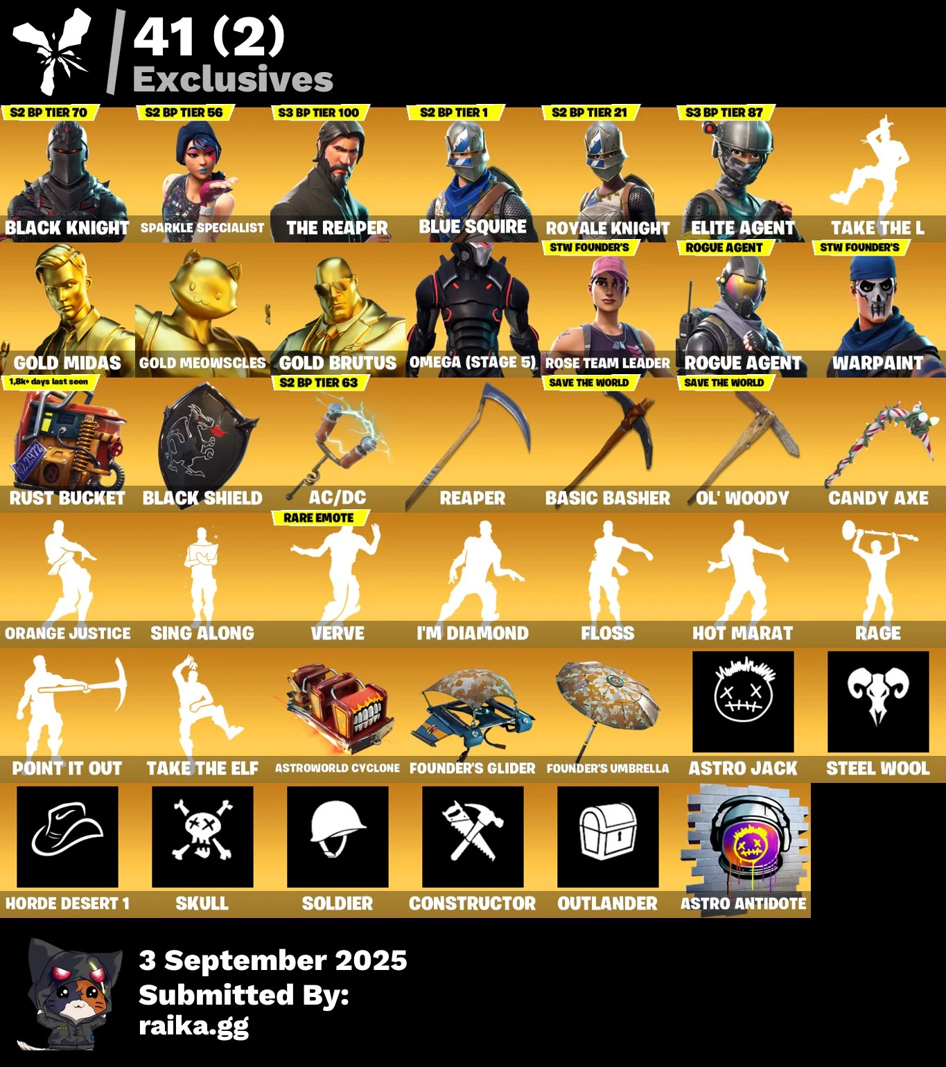 [PC | PSN | XBOX] 142 skins | OG STW | Black Knight | Sparkle Specialist | The Reaper | Blue Squire | Royale Knight | Take The L | Elite Agent | Gold Midas | Gold Meowscles | 940 VB