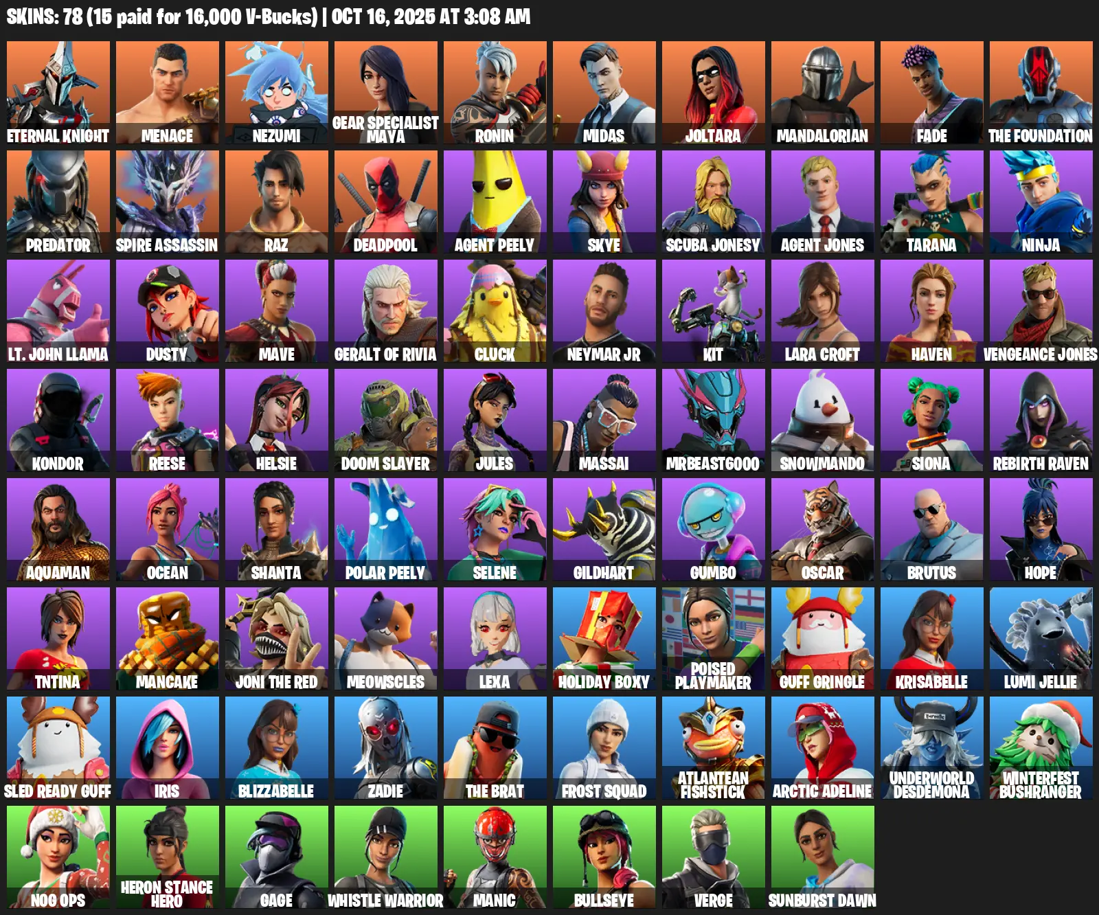 [PC/PSN] | 78 skins | Leviathan Axe | Lara Croft | Eternal Knight | Menace | Nezumi | Gear Specialist Maya | Ronin | Midas | #RWD9048 | #MBFN