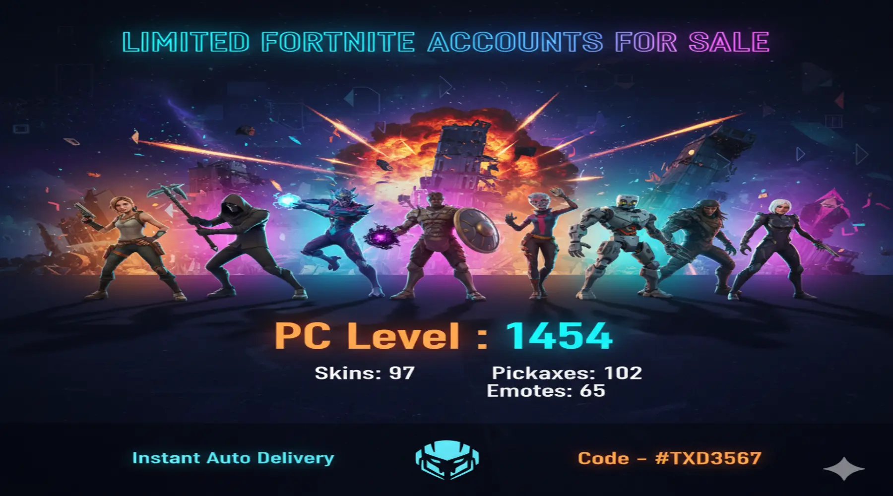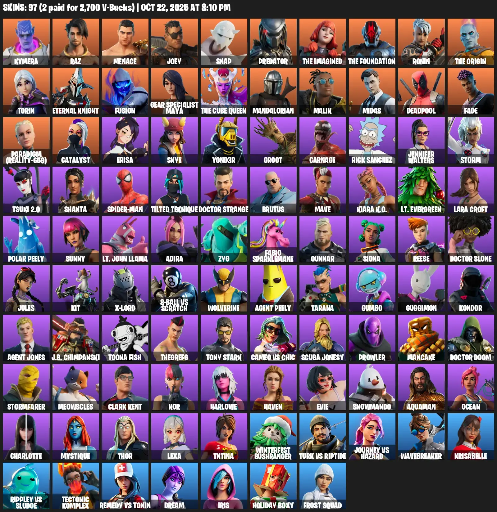 [PC/PSN] | 97 skins | 1550 V-bucks | Lara Croft | Reaper Axe | Kymera | Raz | Menace | Joey | Snap | Predator | The Imagined | #TXD3567 | #MBFN