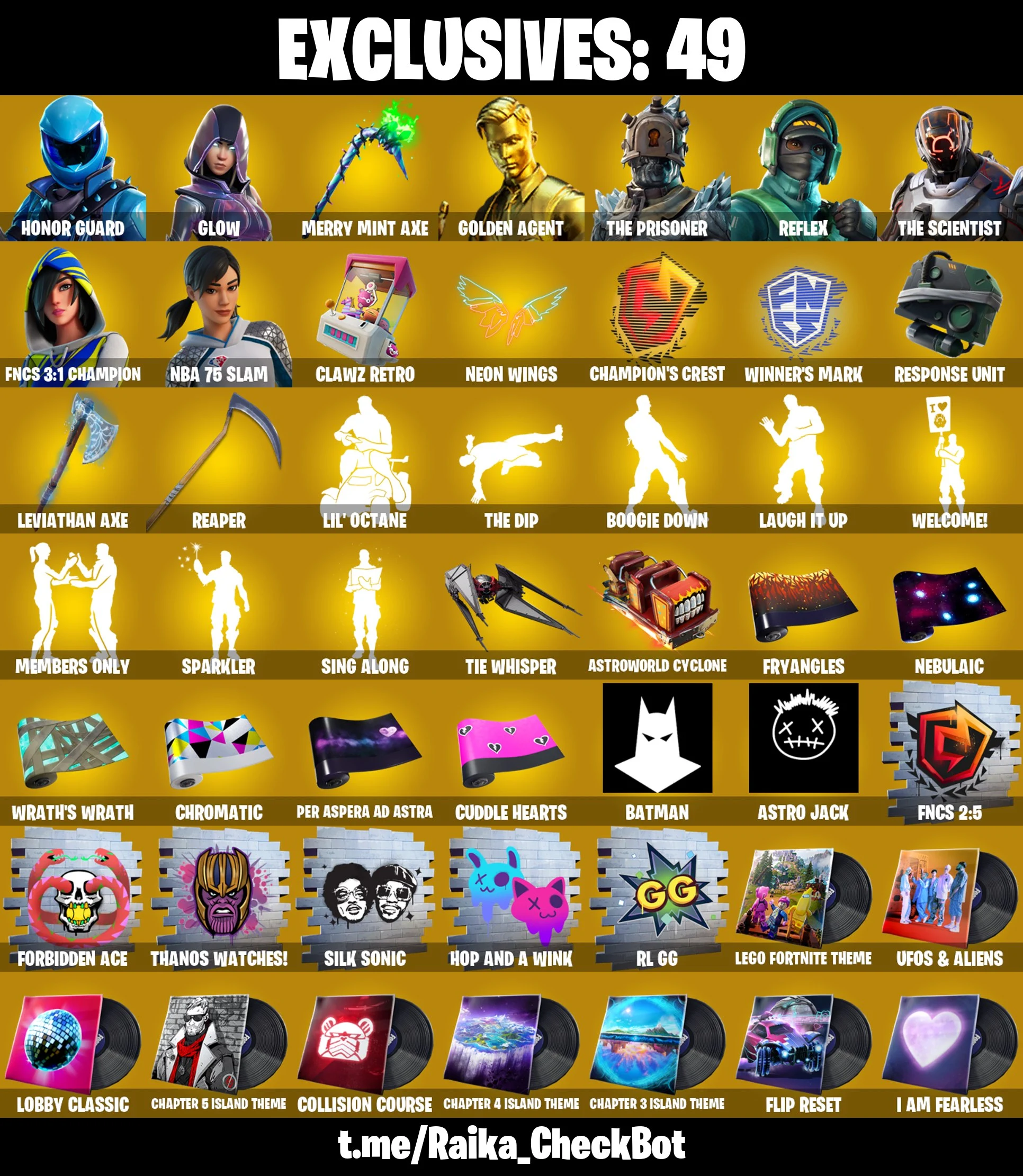 [PC/PSN/XBOX] 173 skins | Honor Guard | Glow | Gold Midas | Reflex | Leviathan Axe | Merry Mint Axe | Y334