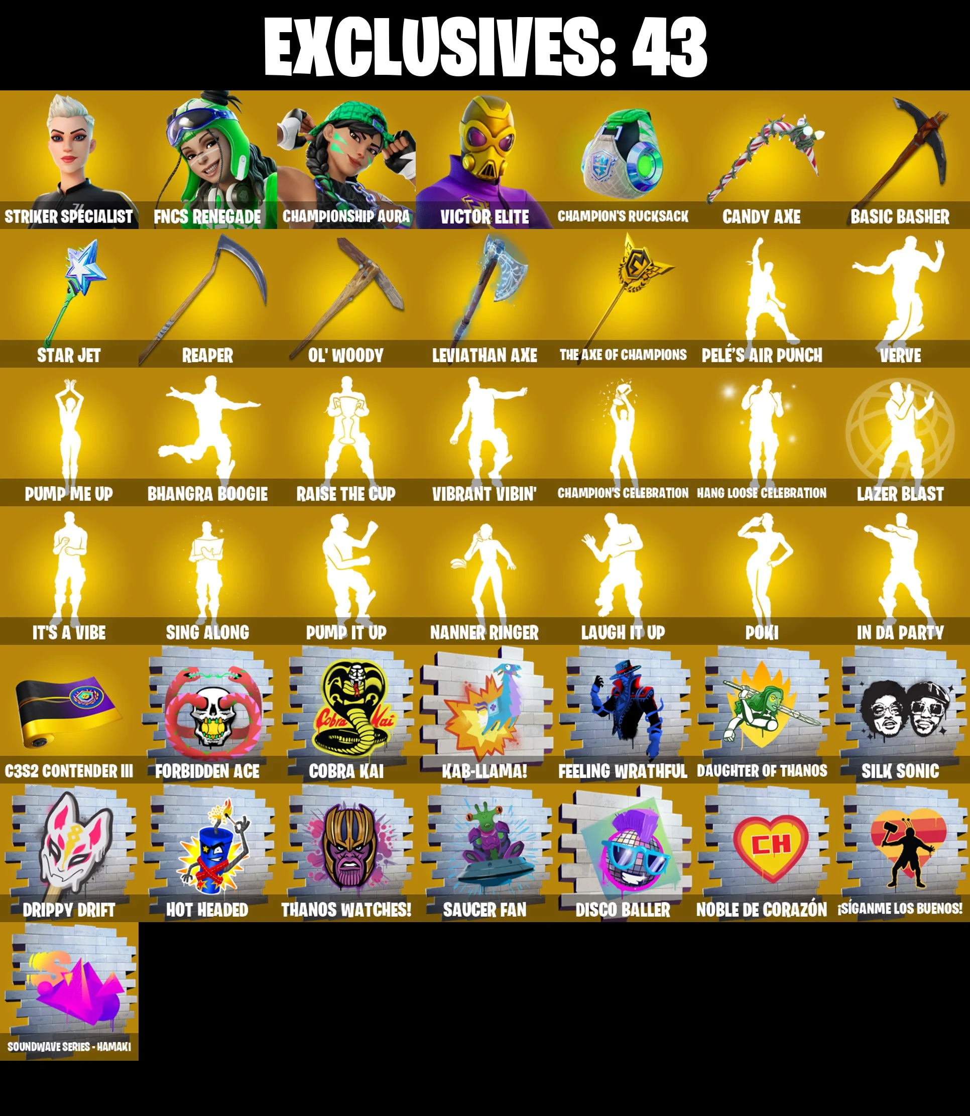 [PC/PSN/XBOX] 288 SKINS ⚡️ Striker Specialist ⚡️ FNCS Renegade ⚡️ Championship Aura ⚡️ Victor Elite⚡️ Gear Specialist Maya ⚡️ 950 VB