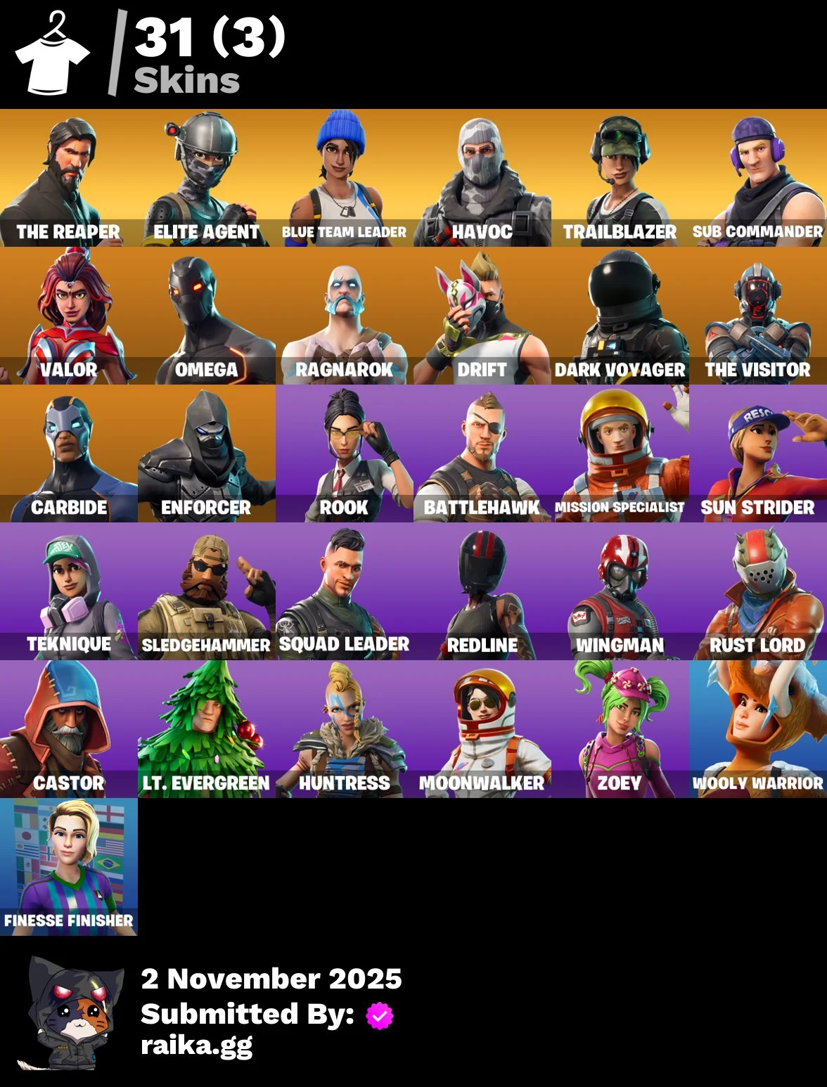 [PC/PSN/XBOX] 31 skins | The Reaper | Elite Agent | Blue Team Leader | Havoc | Trailblazer | Sub Commander | Valor | Omega | Ragnarok | Drift | Dark Voyager | 750 VB