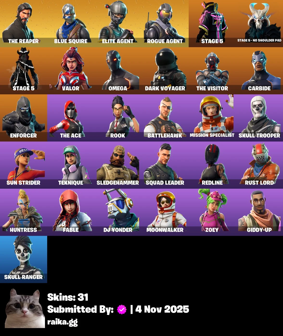 [PC/PSN/XBOX] 31 skins | The Reaper | Blue Squire | Elite Agent | Rogue Agent | STAGE 5 | STAGE 5 ⸱ No shoulder pad | STAGE 5 | Valor | Omega | Dark V
