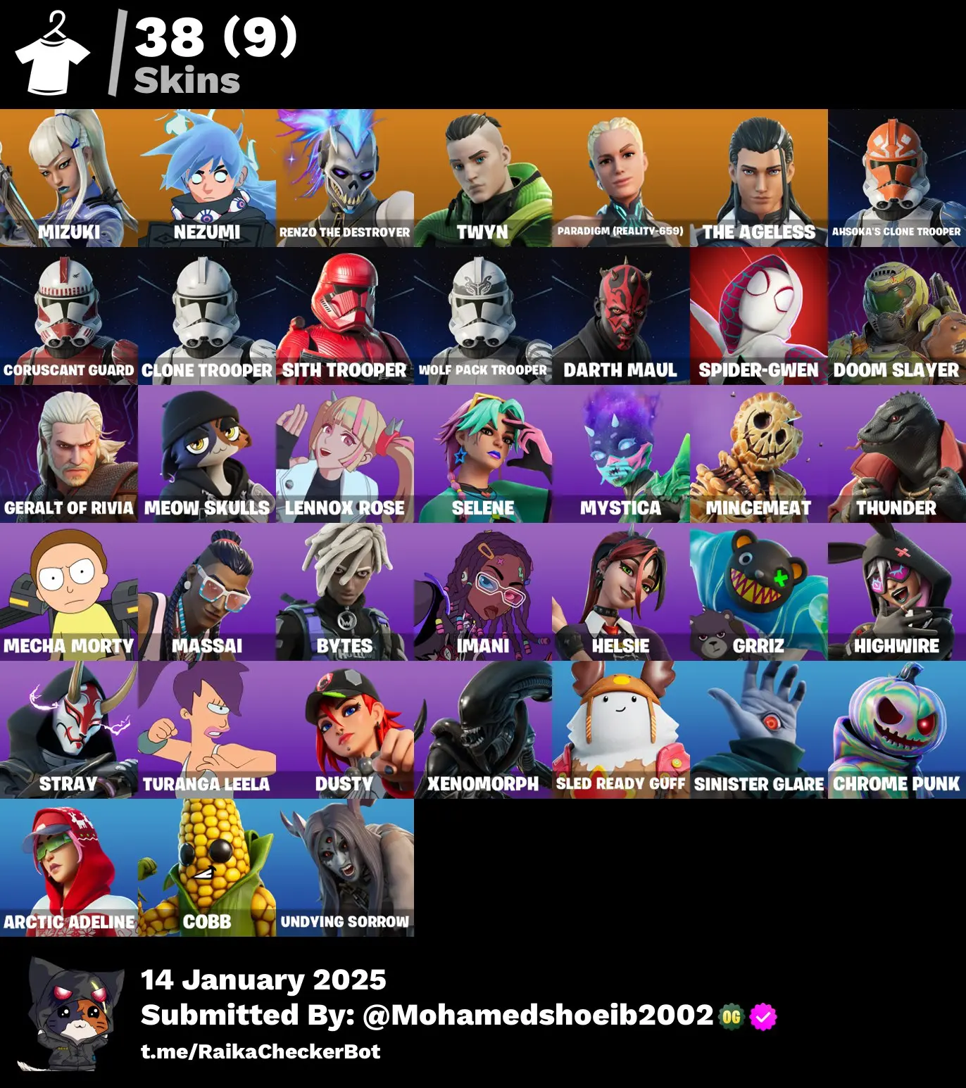 [PC/PSN/XBOX] 38 skins | Mizuki | Nezumi | Renzo the Destroyer | Twyn | Paradigm (Reality-659) | The Ageless | Ahsoka's Clone Trooper | Coruscant Guard | 50 VB