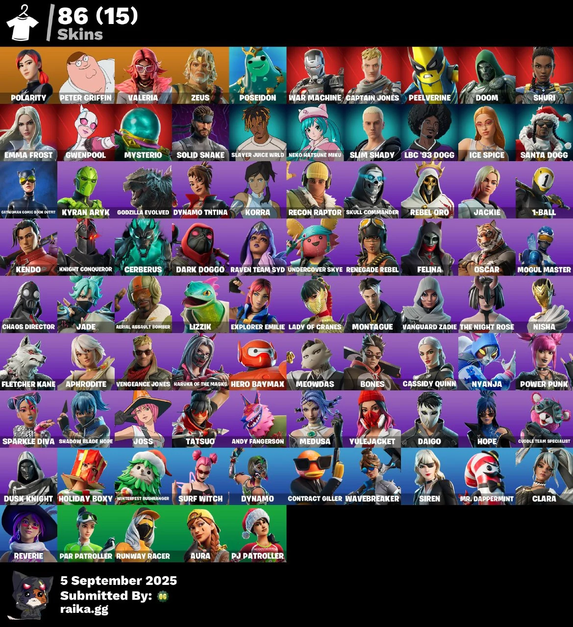 ⭕️ PC/PSN/XBOX⭕️ 86 skins | Polarity | Peter Griffin | Valeria | Zeus | Poseidon | War Machine | Captain Jones | Peelverine | Doom | Shuri | #S6