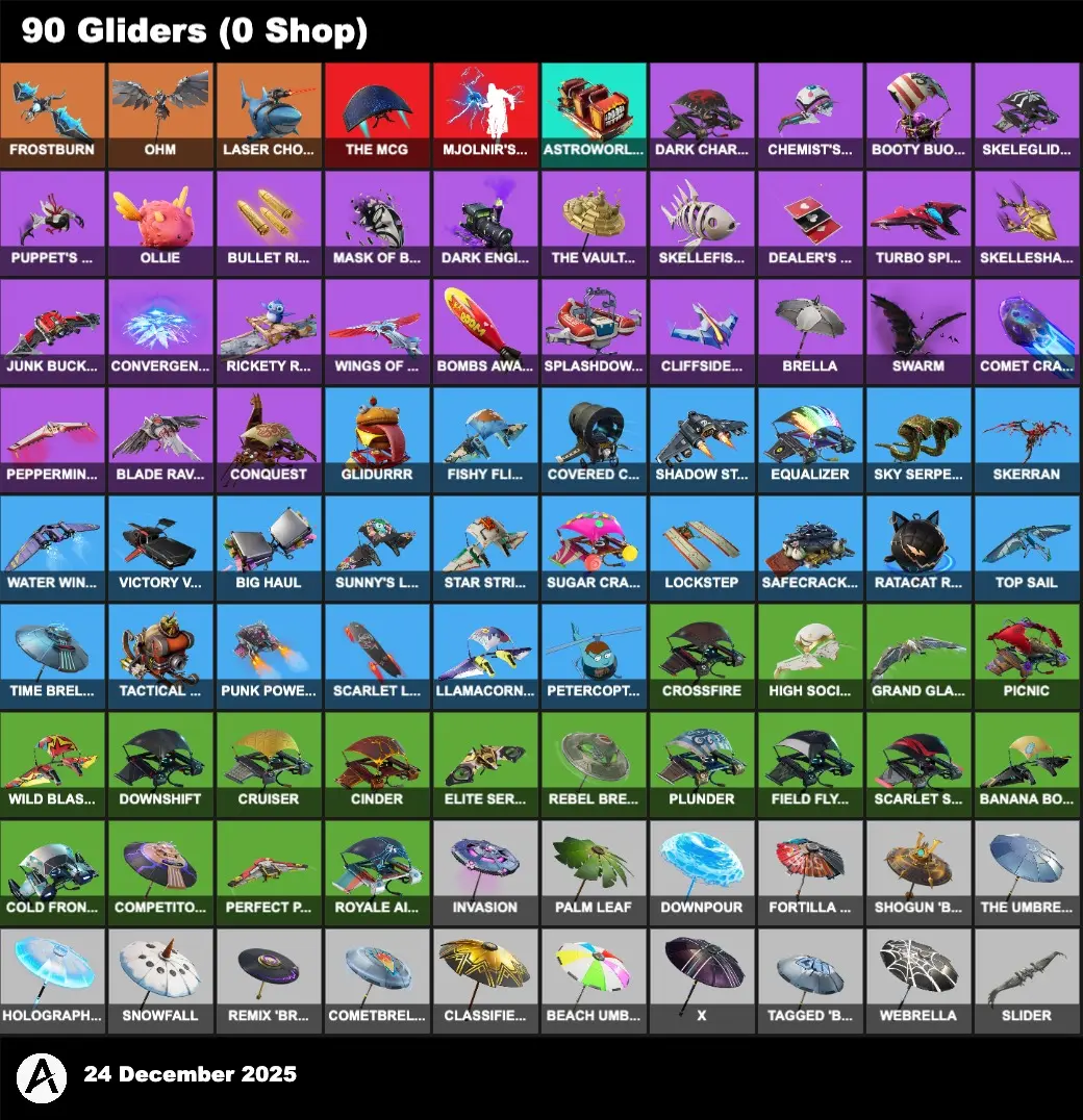| PC/PSN/XBOX | 92 Skins | Travis Scott | Ragnarok | Skull Trooper | Marshmello | Astro Jack | Santa Dogg | Dire | Lynx | Frostbite | The Prisoner | Carbide | Hybrid | Calamity | Eternal Knight | Rox