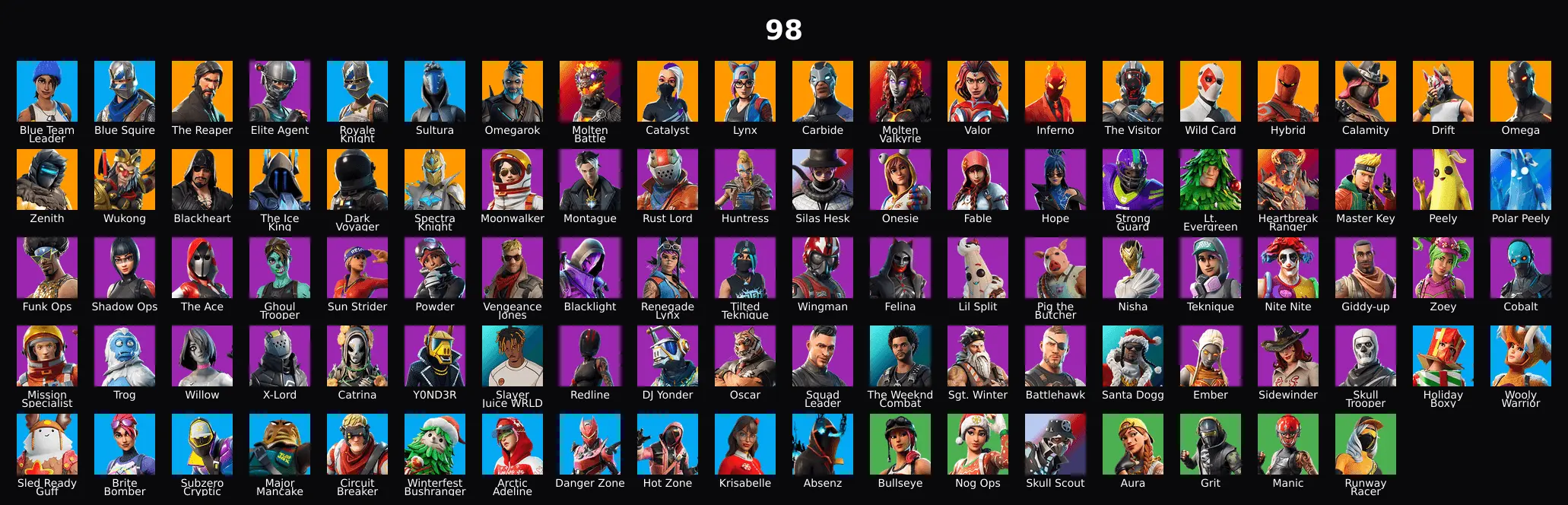 PC,PSN,XBOX 98 SKINS FA ⸱ BLUE SQUIRE ⸱ REAPER ⸱ OMEGA,INFERNO,BLACKLIGHT,GHOUL TROOPER,CATRINA,SKULL TROOPER RK1896
