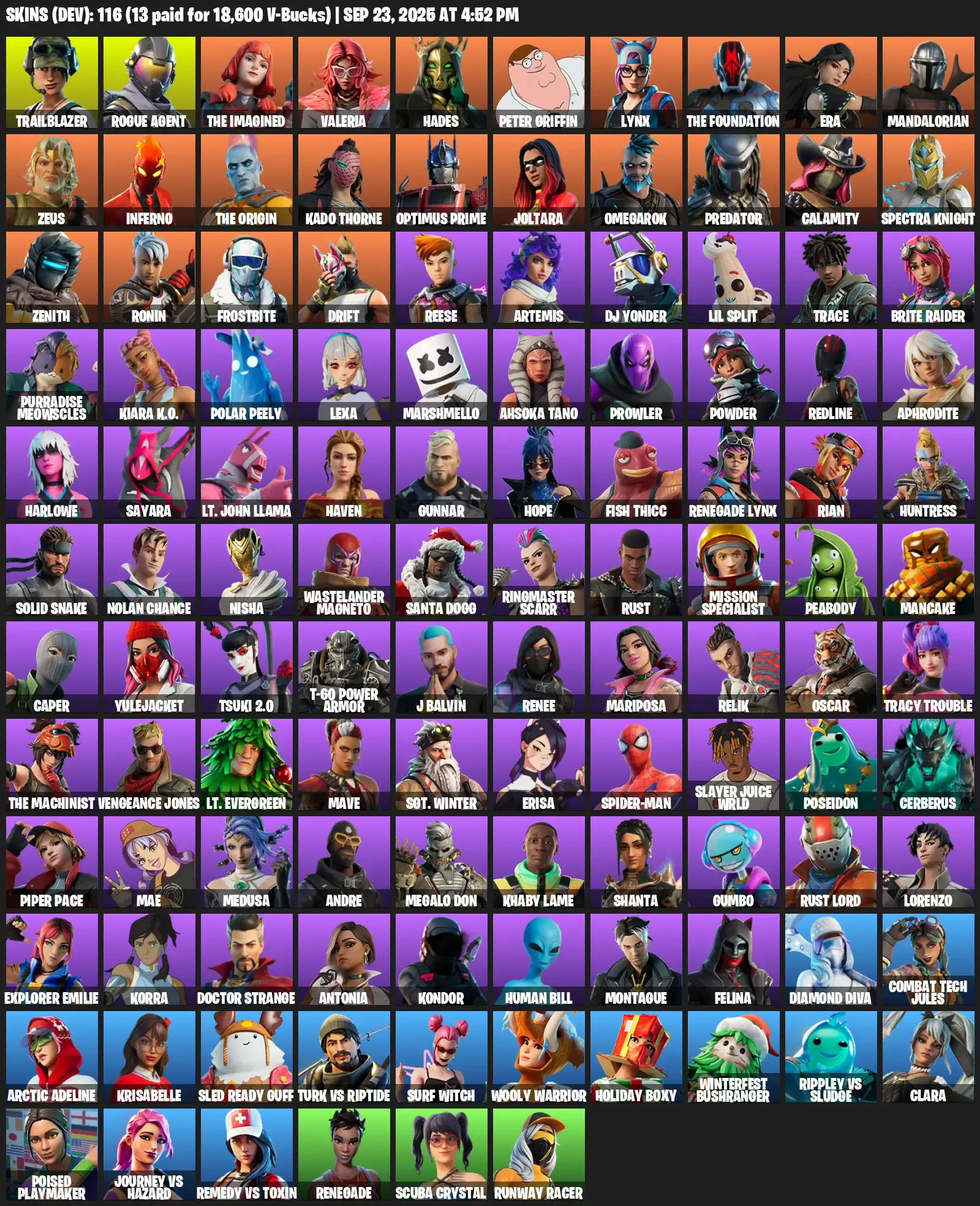 [PC/PSN/XBOX] | 116 skins | Take The L | Trailblazer | Rogue Agent | The Imagined | Valeria | Hades | Peter Griffin | Lynx | #HVM4888 | #MBFN