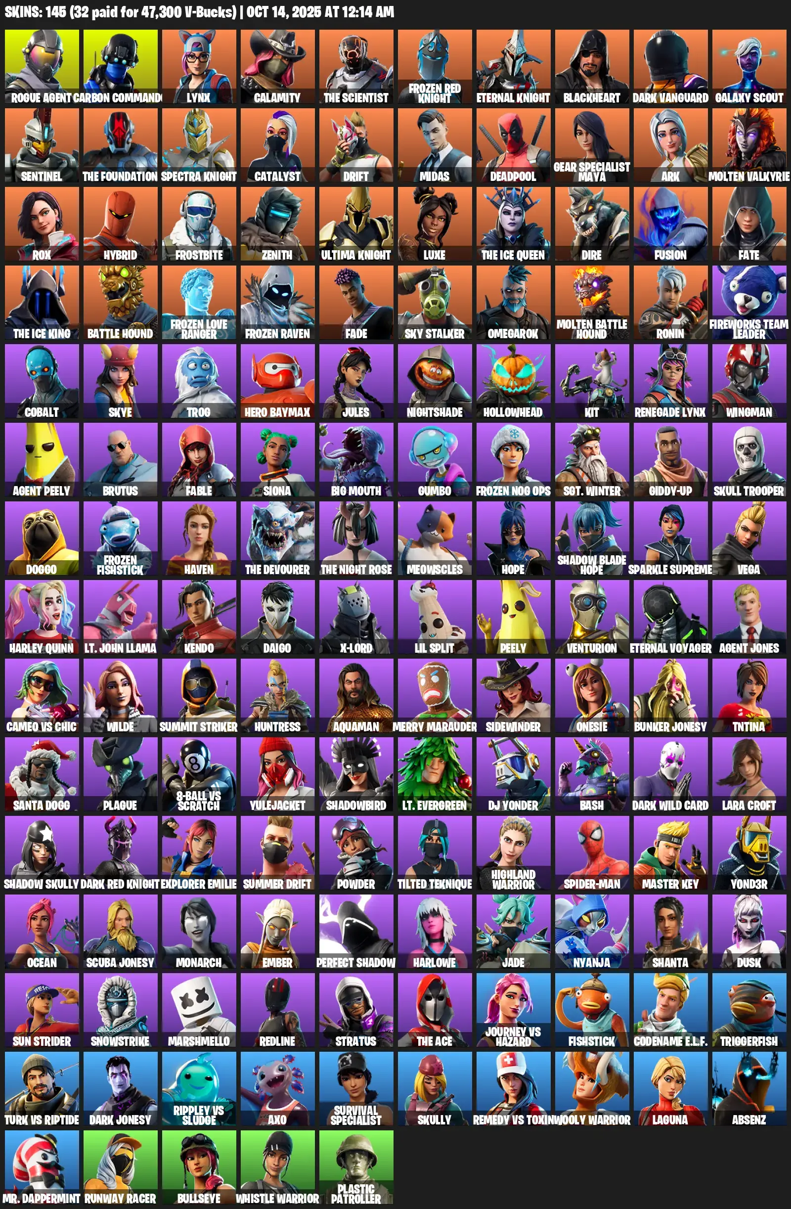 [PC/PSN/XBOX] | 145 skins | 750 V-bucks | Lara Croft | Rogue Agent | Carbon Commando | Lynx | Calamity | The Scientist | #XYC9986 | #MBFN