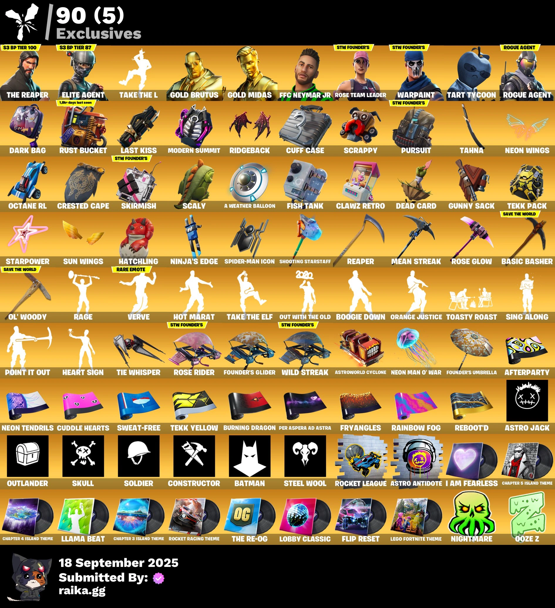 🎭 [PC/PSN/XBOX/NINTENDO] 251 SKINS | OG STW | THE REAPER | ELITE AGENT | GOLD BRUTUS | GOLD MIDAS | TART TYCOON | ROGUE AGENT | DRIFT STAGE 5 | THE AGELESS CHAMPION | 480 VB🎭 💎 FULL ACCESS 🎮 PSN/XBOX/PC🎮