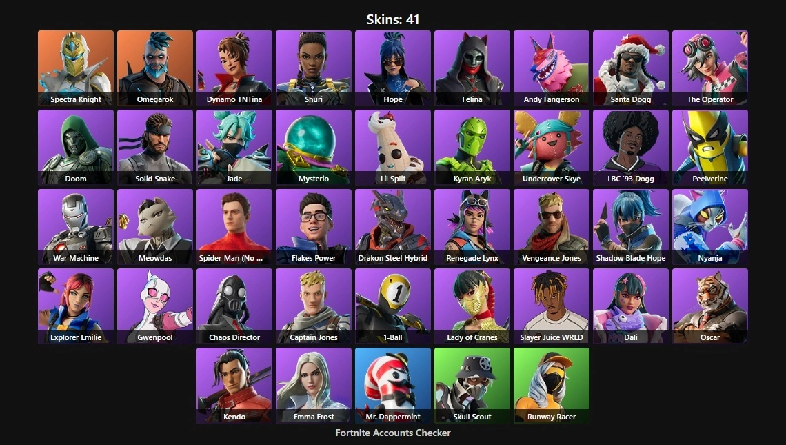 PC/XBOX 41 Skins⚡ | Spectra Knight | Omegarok | Dynamo TNTina | Shuri | Hope | Felina | Andy Fangerson | Santa Dogg | The Operator | Doom | Solid Snake