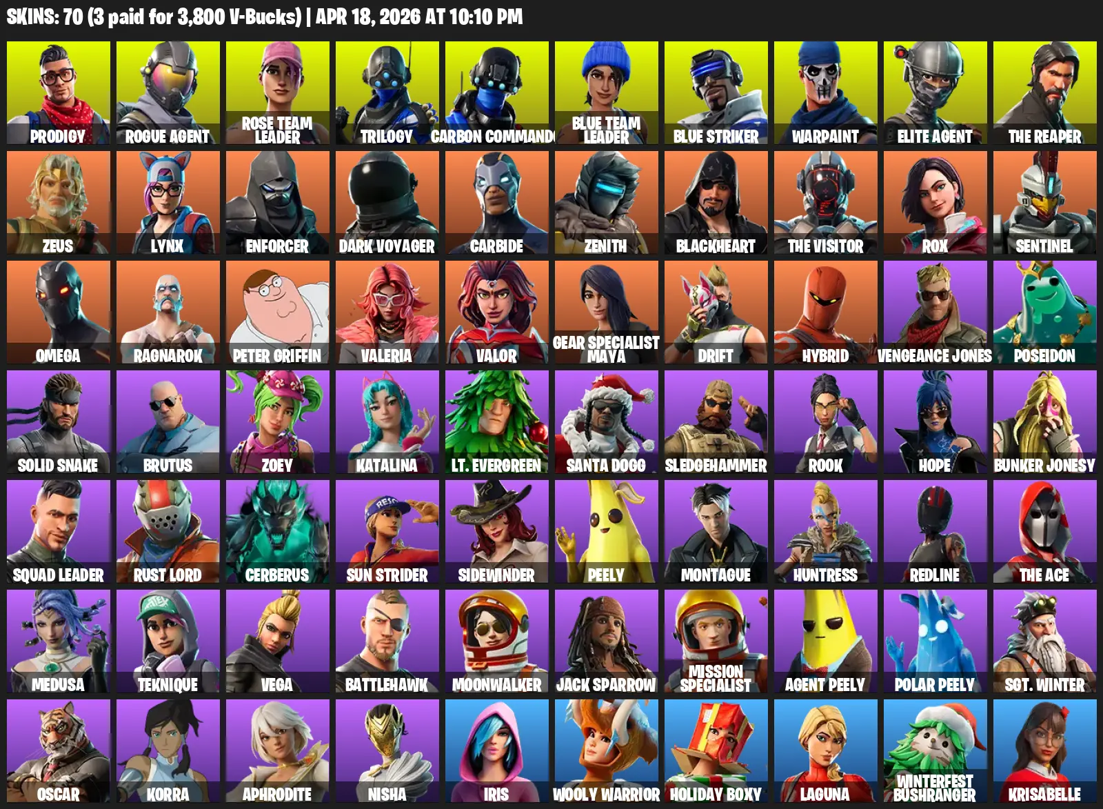 [PC/XBOX] | 70 skins | Take The L | OG STW | The Reaper | Elite Agent | Omega | Prodigy | Rogue Agent | Rose Team Leader | Trilogy | #DRM0520