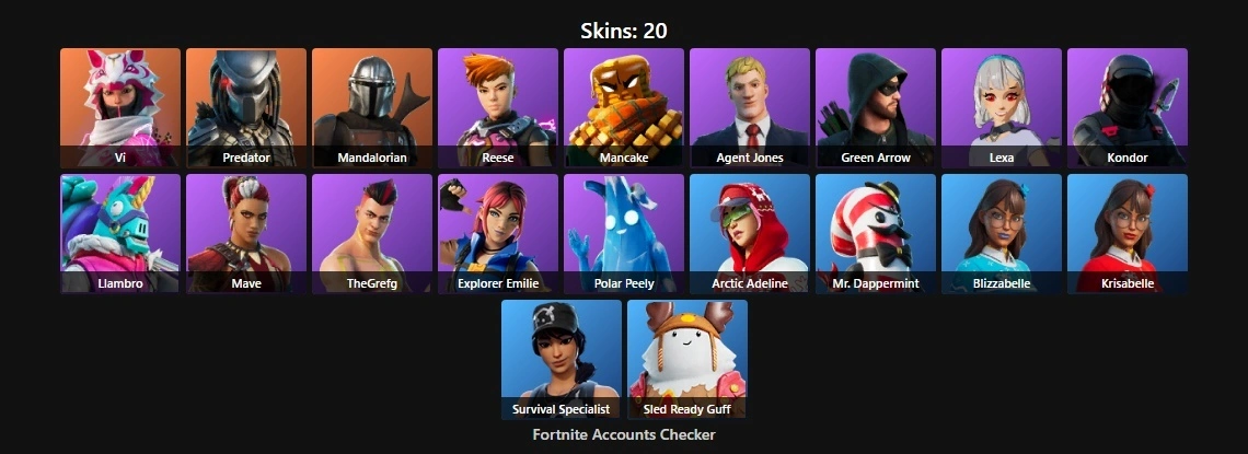 PC/XBOX/PSN 20 Skins⚡ | Vi | Predator | Mandalorian | Reese | Mancake | Agent Jones | Green Arrow | Lexa | Kondor | Llambro | Mave | TheGrefg