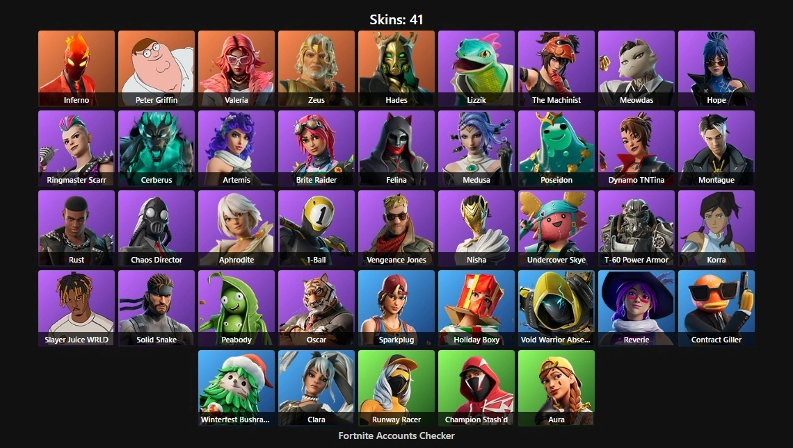 PC/XBOX/PSN 41 Skins⚡ | Inferno | Peter Griffin | Valeria | Zeus | Hades | Lizzik | The Machinist | Meowdas | Hope | Ringmaster Scarr | Cerberus | Artemis