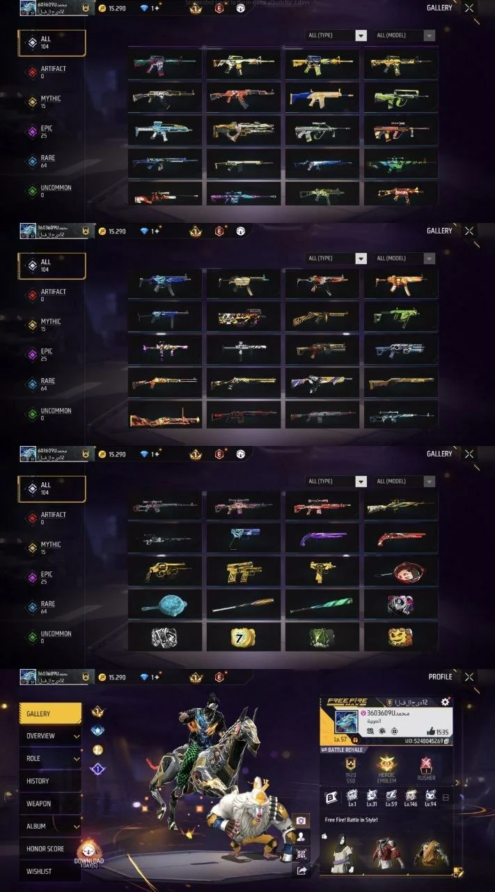 iOS Android 💯 Level 57 🛍️ Set 94 🗡️ Server MENA 💎 Code1584
