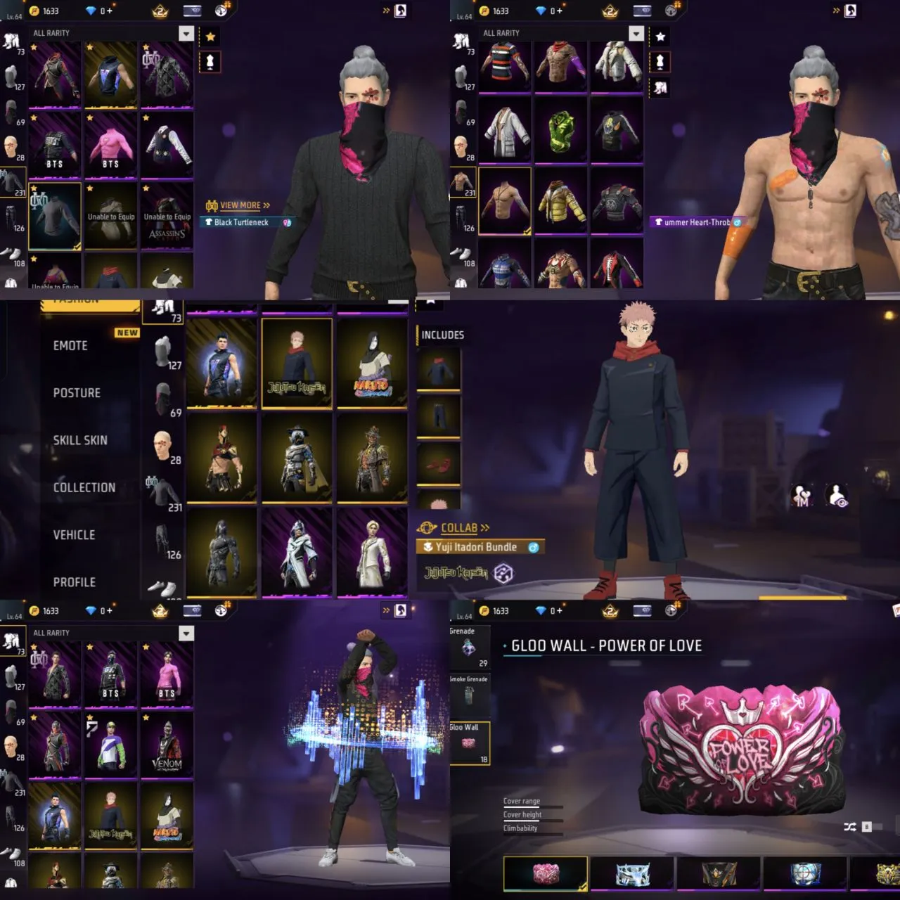 PREMIUM ACCOUNT ,⚡250+ VAULT / 4 EVO👾THE SHADOW (RED)👾BUNDLE,+FULL YUVIITADORI SET+BLACK SHIRT👾7500+LIKES❤️BUNCH OF OUTFITS👾PRIME LEVEL 4👾