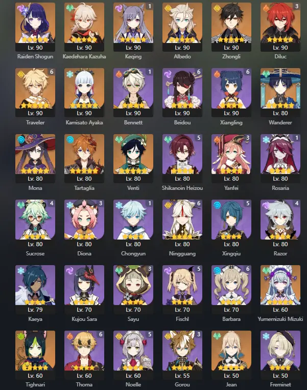 AR58 / Asia {17X 5 STAR LEGENDS} Zhongli + WP / Raiden + WP / Kazuha / Ayaka / Wanderer / Mizuki / {6-WEAPON}- FULL ACCESS Zka648