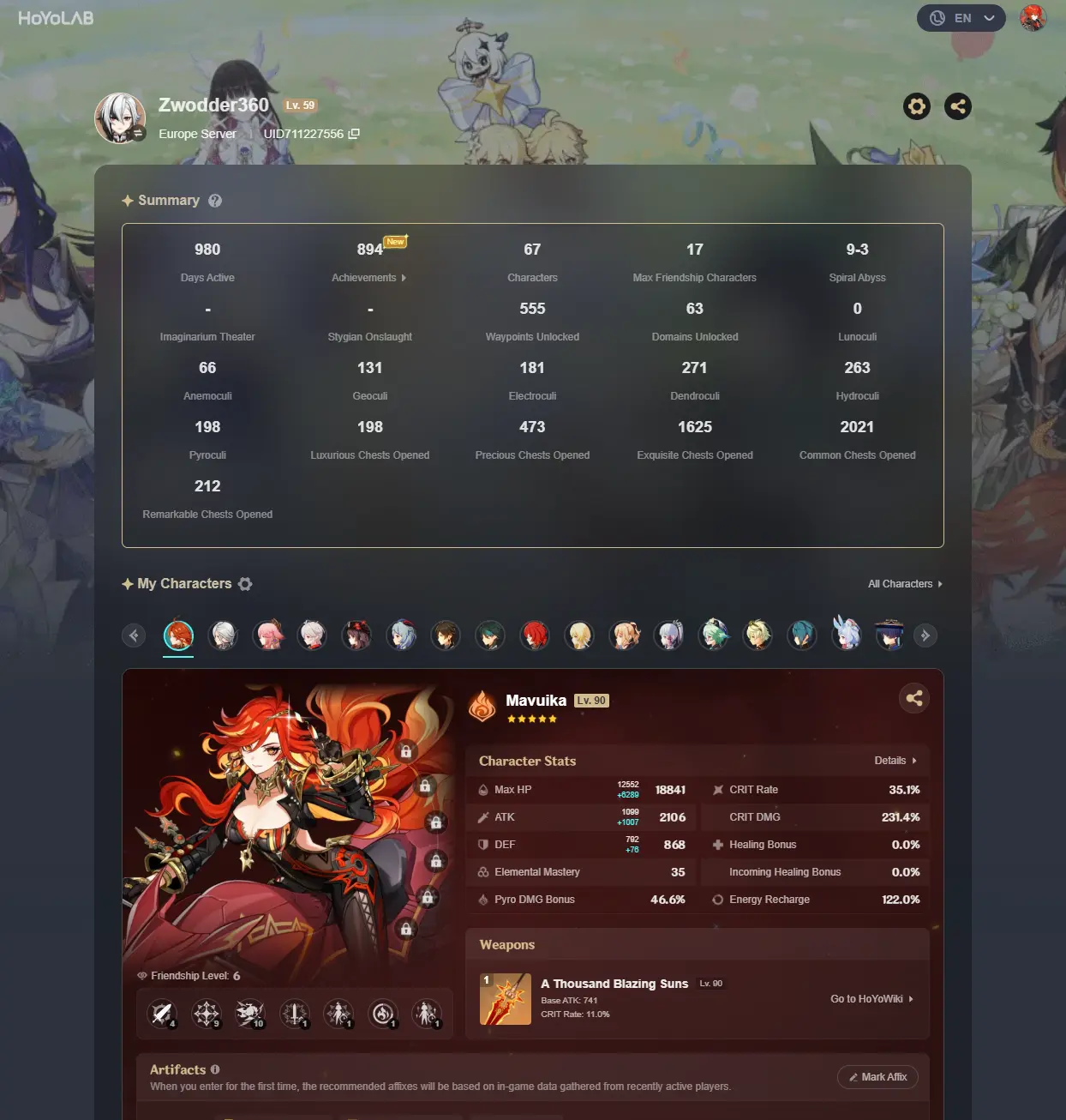 #GE673 [EU] AR 60 | 47 LEGS | Jean C6+Xianyun C1+Mavuika&Sign+Arlecchino+Baizhu+Wriothesley+Kazuha+Hu Tao+Yelan+Raiden+Xiao+MORE | FULL ACCESS + EMAIL