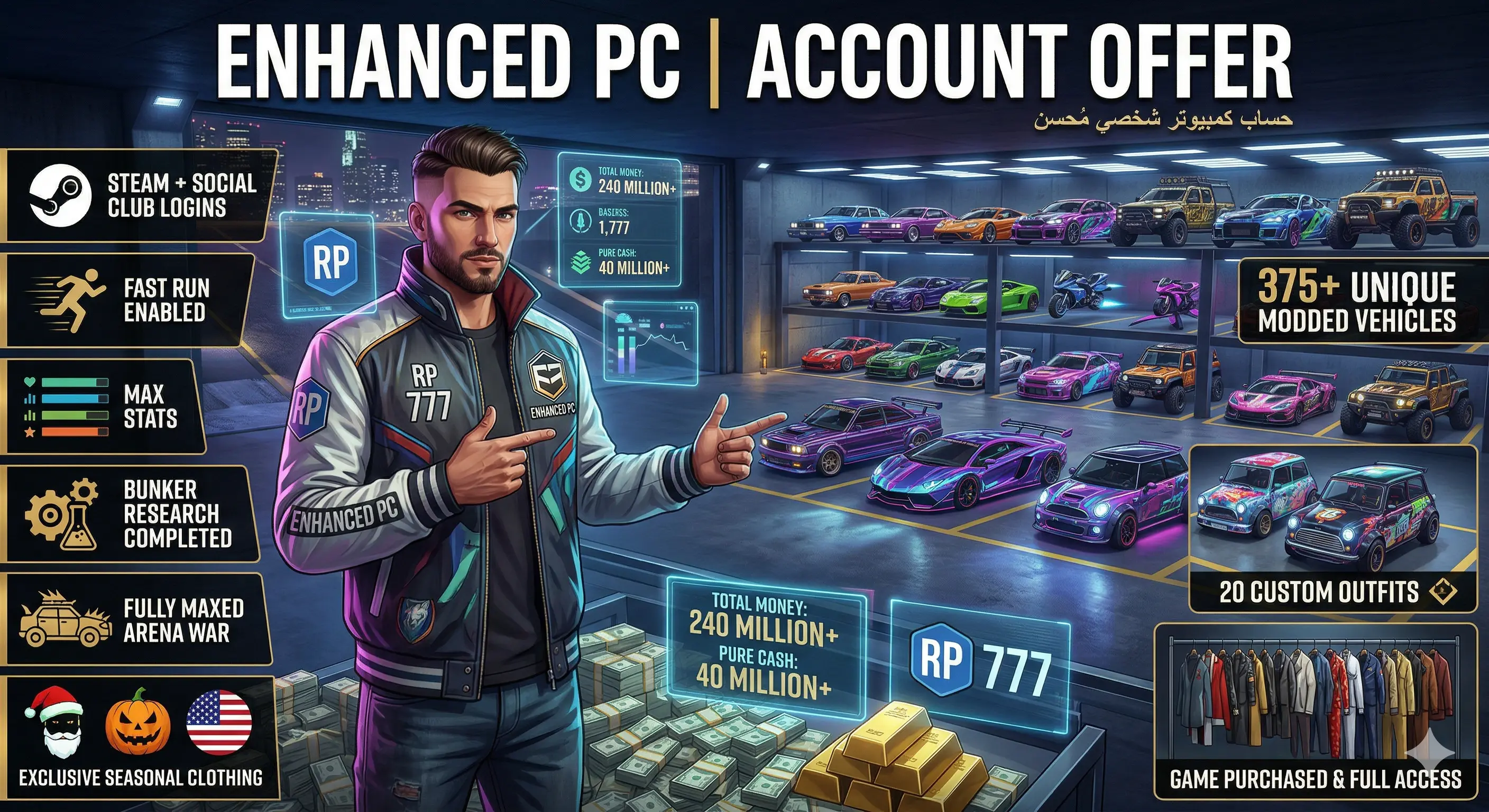 ๐ป ENHANCED PC ๐พ STEAM | ๐๏ธ 375 MODDED VEHICLES + ๐ฐ 240M TOTAL MONEY | ๐ญ 20 MODDED OUTFITS | โก FAST RUN | ๐ ALL UNLOCKS ๐ฅ