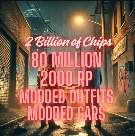 [GTA 5 ENHANCED] RP 2000 | F1 & Benny’s Cars | Male Character | 10 Modded Outfits | 80M Cash | 2 Billion Casino Chips | Max Stats
