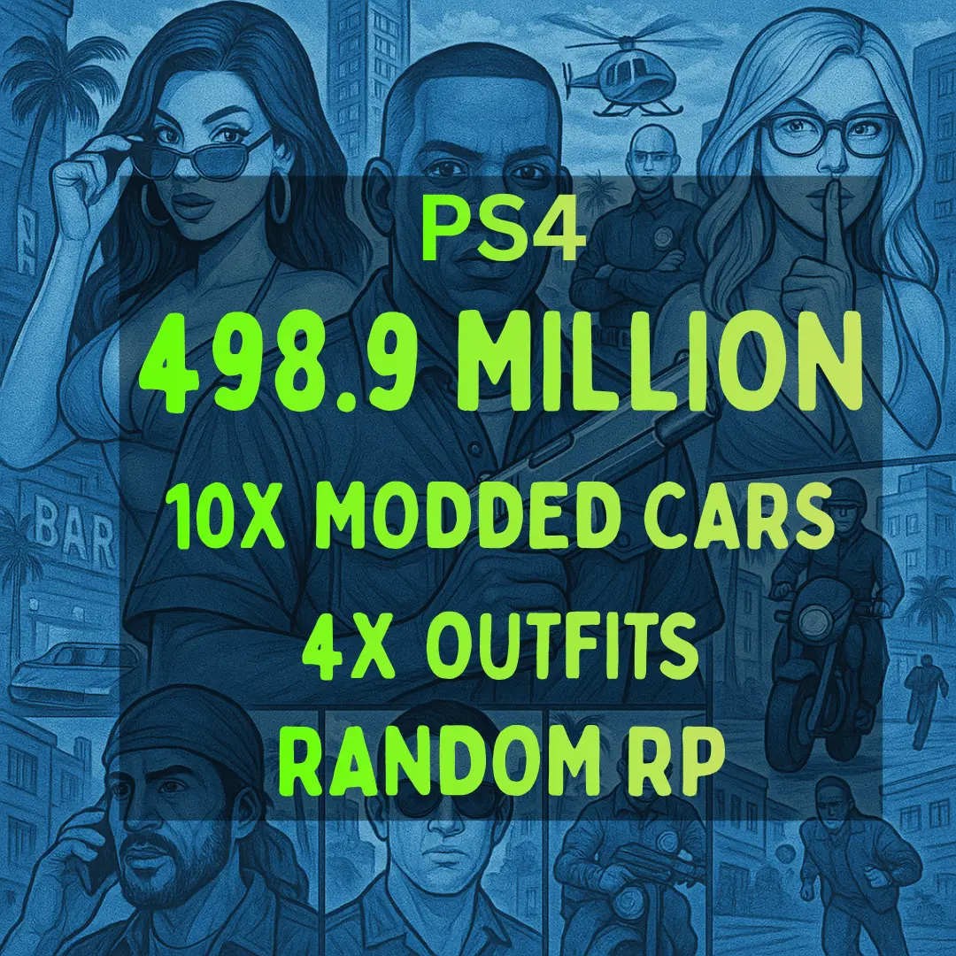 🦄 [PS4] 💴 498.9 Million Cash + 🚒 Deluxo 🎲 RP Random 🛻 10 Modded Cars 👚 4 Outfits 🌟 GTA Modded Account
