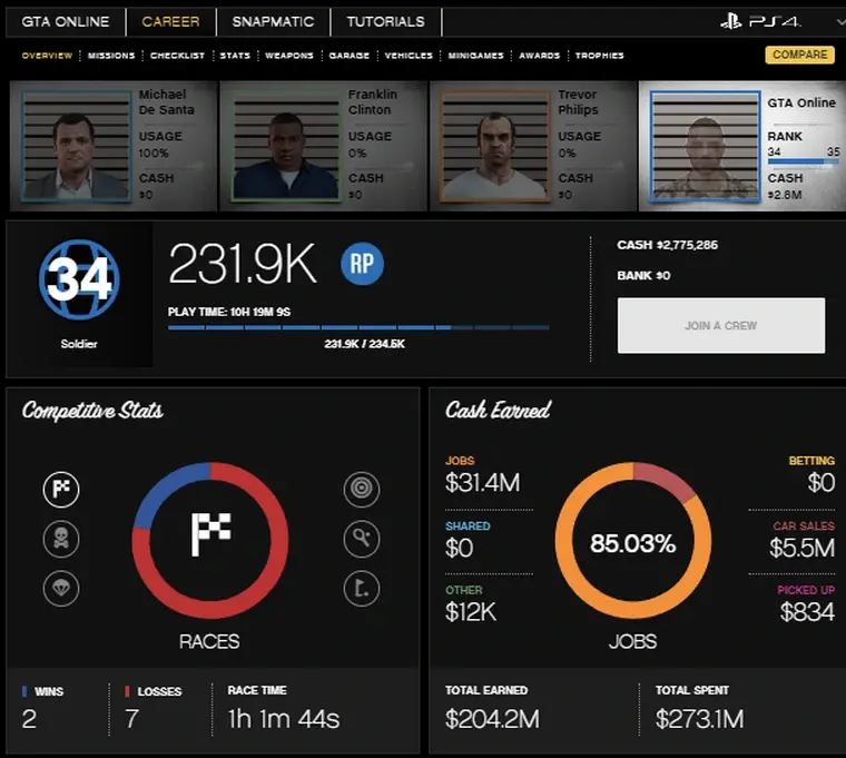 [PS4] Dual Character GTA 5 Modded Account ✦ Power Vault ✦ 1.5 Billion (2M Cash + 520 Cars + 9 Outfits) | RP Rank 30 | Instant Delivery | Full Access | OF10