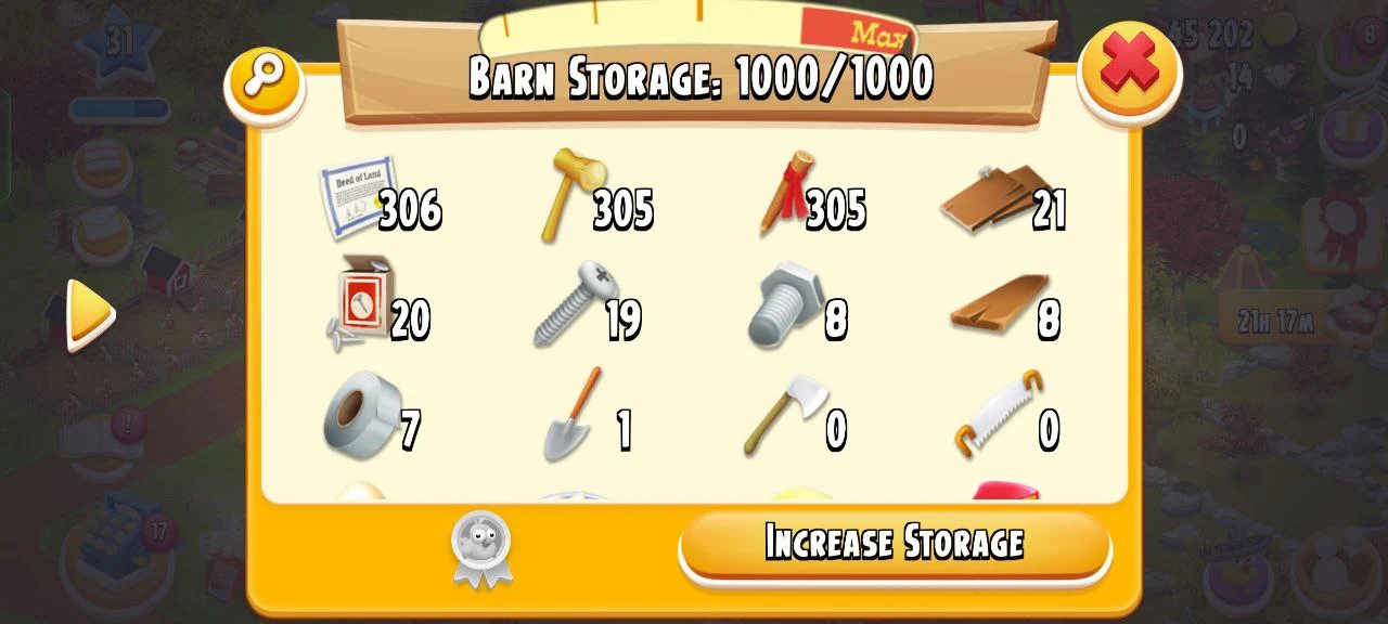 HAYDAY ACC 🥰 31 XP LVL 🌪 1000 BARN STORAGE 🤯 500 SILO STORAGE ♾️ 45,202 GOLD 🦷 IOS/ANDROID ♾️⭐FULL MAIL ACCESS 🔥 FULLY GUARANTEED ✨ INSTANT DELIVERY