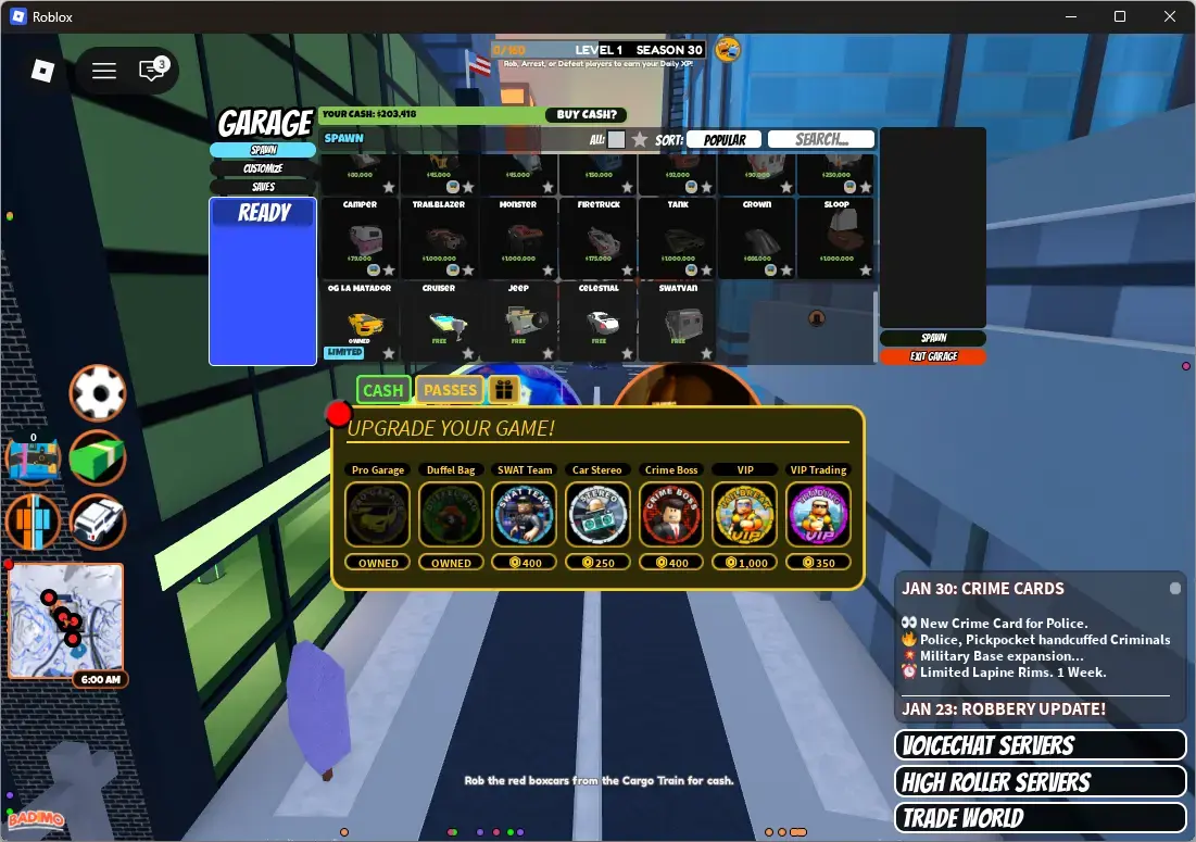 ❤️ Jailbreak ❤️ 203K cash ❤️ limited og la matador ❤️ Pro Garage ❤️ Duffel Bag ❤️