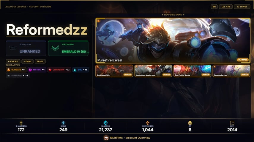 ![[TRANSFERABLE] [TR] 🎖️✨ ELEMENTALIST LUX 💎⚔️ GUN GODDESS MISS FORTUNE 🗺️📍 DJ SONA 🧙⭐ PULSEFIRE EZREAL 🌌💎 ALL CHAMPIONS 🛡️🎮 777 Skins 🎟️🌟 104,900 BE 📊🏹 100 RP 🎁🛡️ Premium LoL Account for Sale](https://cdn.gameboost.com/games/league-of-legends/tiers/sm/Master.webp)