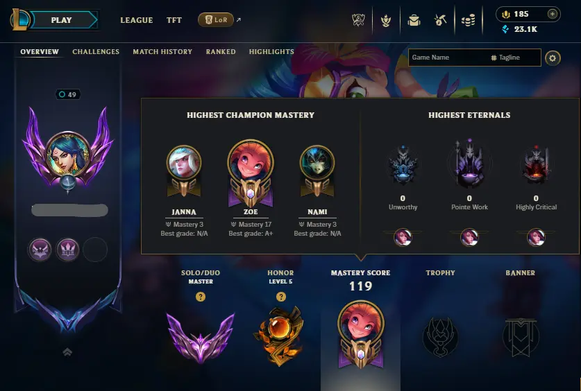 HUGE SALE!🔥LVL49 Master 35LP 59%WR💎23K BE 10Skins🔓Unverified Email✅Lifetime Ownership Guarantee ⸱ Never Taken Back