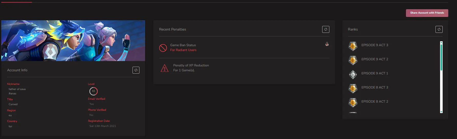 🌍 [ME] | 🔹 Level 76 | 🏅 Unranked | 🎭 2 Skins | 💠 49,226 BE | 💎 0 RP | 🧢 Honor Level 3 | 🧙 33 Champs | ➕ Comes with a Good Valorant Account