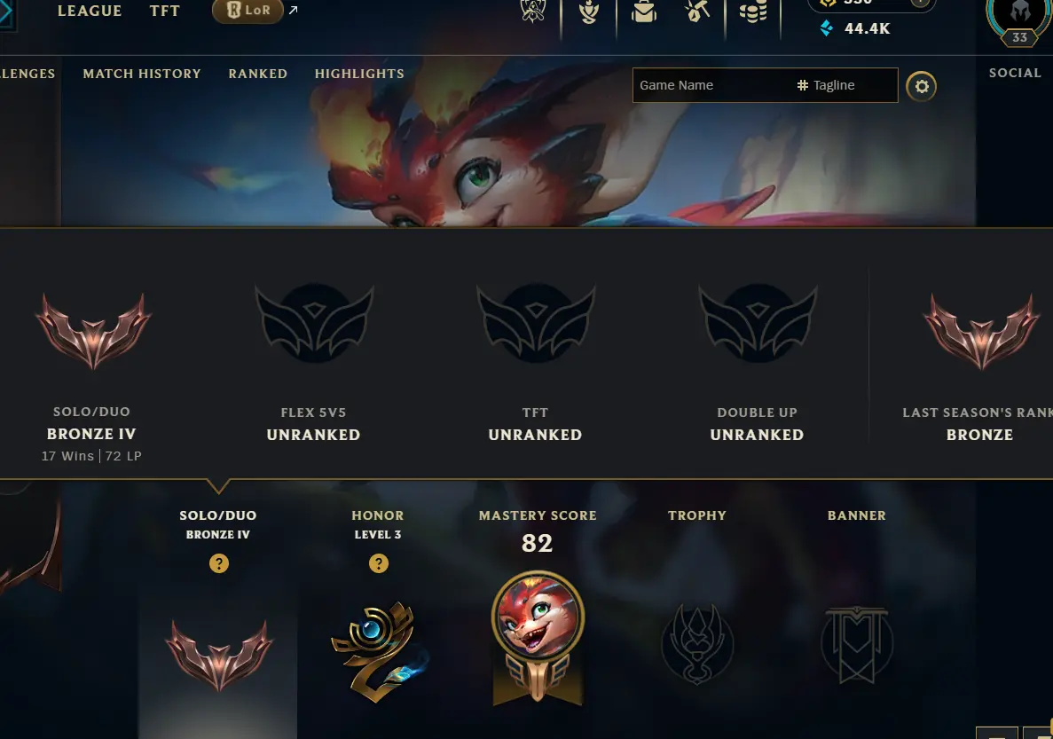 ⚡ 【 NA】 ⸱ BRONZE IV  ⚡ | Hand ⸱ ( leveled + De-ranked ✌️ ) | Verified ✅ | 44405 BE 💵 | 350 RP 💰 | Untouched-Loot 🔒 | Check Description 🔰