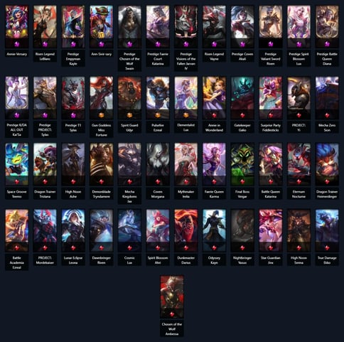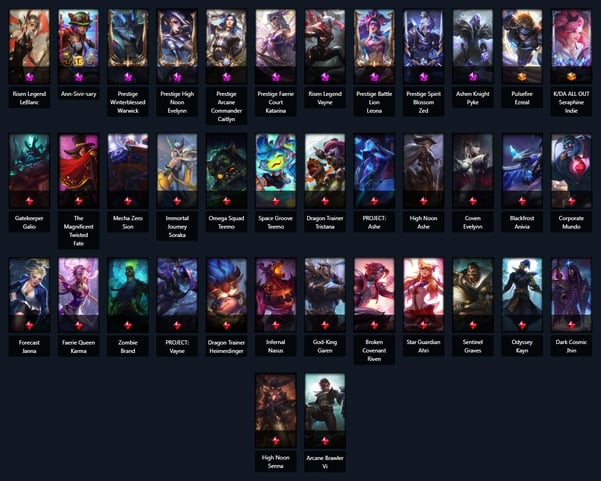 UnRanked┃129 skins┃159 Champs┃(2 Mythic) Neo PAX Sivir Forecast Janna Brolaf Blackfrost Anivia Infernal Nasus Odyssey Kayn Arctic Ops Varus