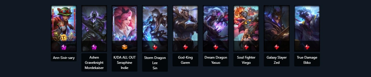 UnRanked┃51 skins┃171 Champs┃(2 Mythic) Ashen Graveknight Mordekaiser Soul Fighter Viego Storm Dragon Lee Sin True Damage Ekko God-King Garen Galaxy Slayer Zed Dream Dragon Yasuo