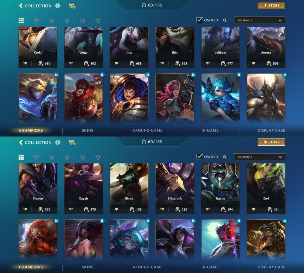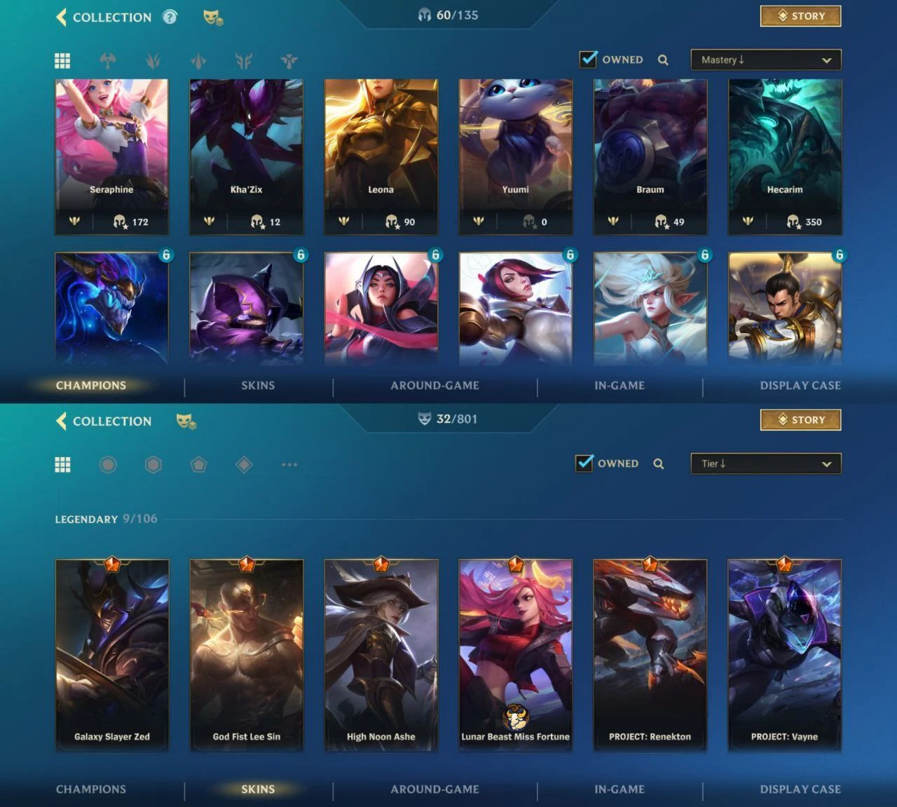 iOS/Android 🎯 EU 🛍️ Level 59 🧿 Champions 60 👑 Skins 32 ⚡ Legendary 9 🎉 Code1307