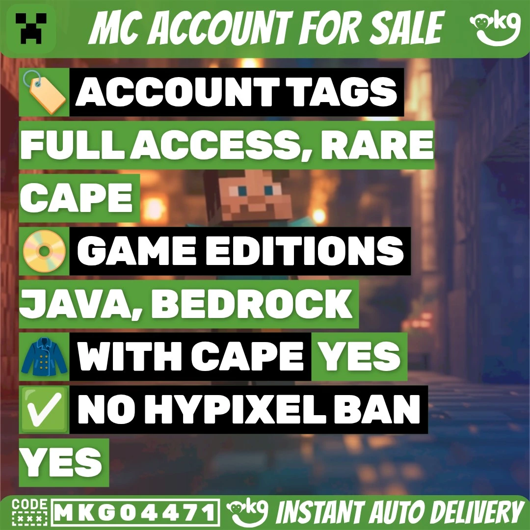 🎹 Minecraft 🎵 Java and Bedrock 💼 Vanilla , Pan , Common Capes 🌈 Instant Delivery 🔋 Complete Access 💫 !MKG04471