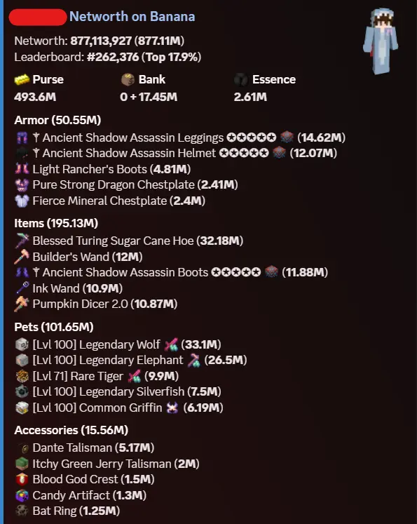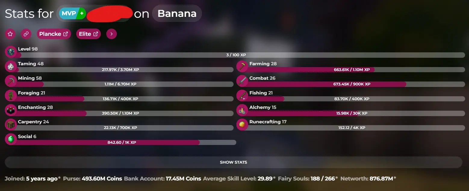 ⭐MVP+ | 876M Networth | 98 SB Lvl | 500M Purse | Cata 11 | 223 MP | Slayers 5/4/3/1❗Solo Coop