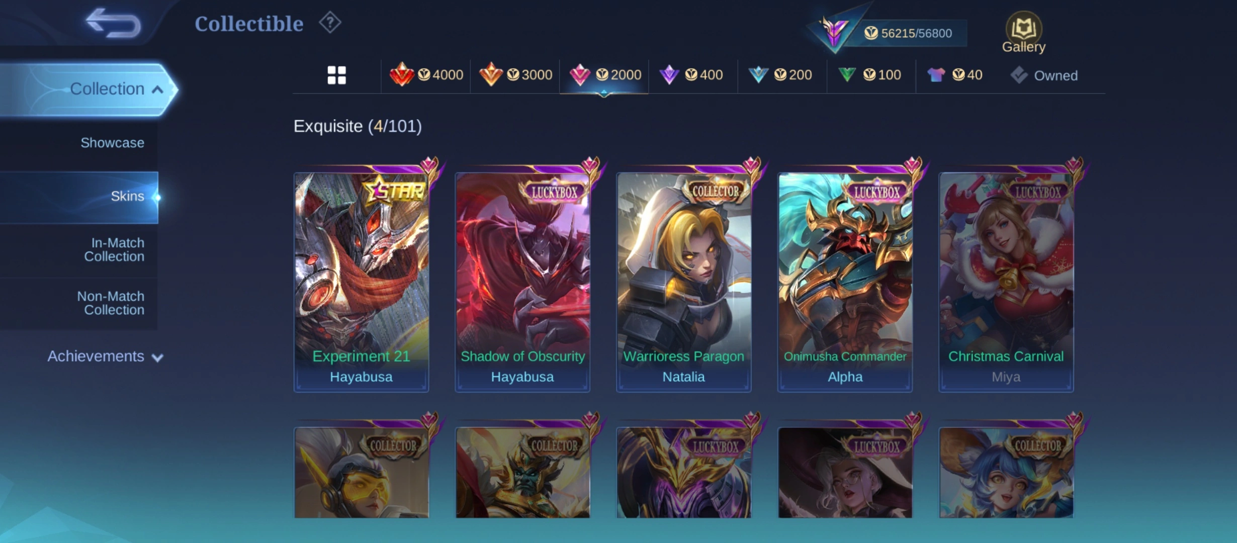 GG883|Lvl 60|RENOWNED CC 4|214 SKIN|ALL EMBLEM MAX|2 SANRIO(CHANG'E,FLORYN)|HAYABUSA ANNUAL|2 LUCKYBOX(HAYABUSA,ALPHA)|12 EPIC SKIN|EPIC 2