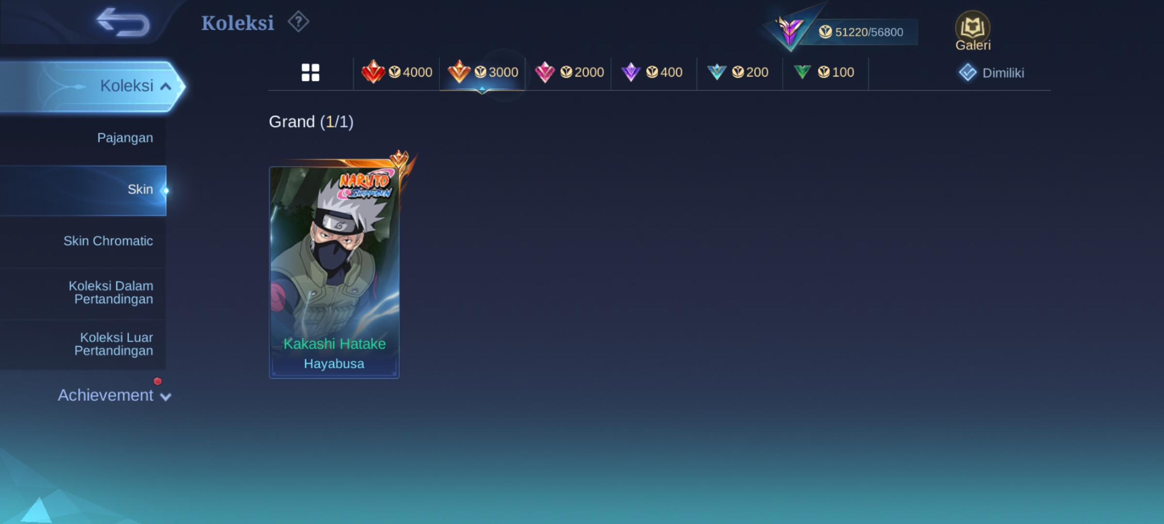 ML-381 Skins 217 [ Magic Core 113 ] Kakashi Hayabusa / Gaara Vale / Collector Natalia / M4 Beatrix / 2 Luckybox