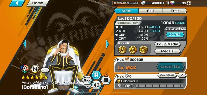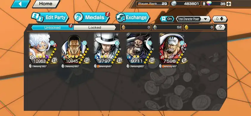 [3367][IOS+ANDROID] 5 EX / Kizaru + Lucci + Kaido + Akainu + Luffy Light / Support 145% tag Xoan , Good Medal