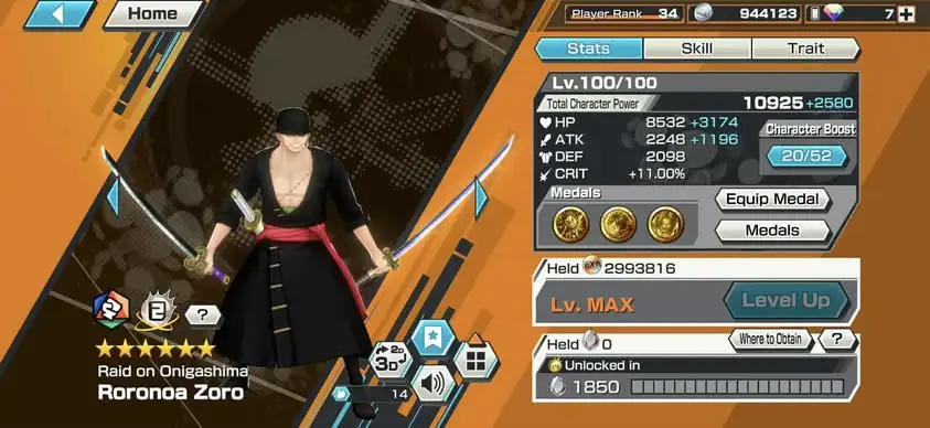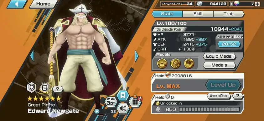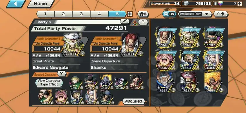 [3386][IOS+ANDROID] 9 EX / Garp + Shanks Light + Whitebeard + Zoro + 2 Big Mom + Roger Dark + Sabo + Yamato , Support 138% , Good Medal