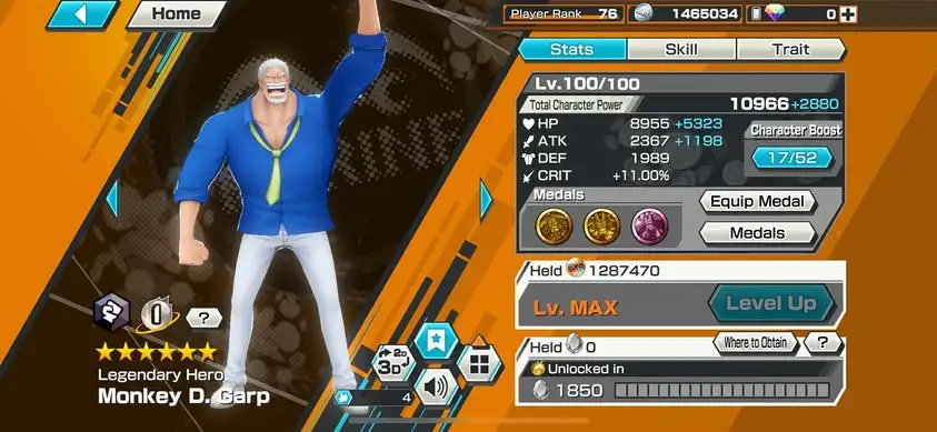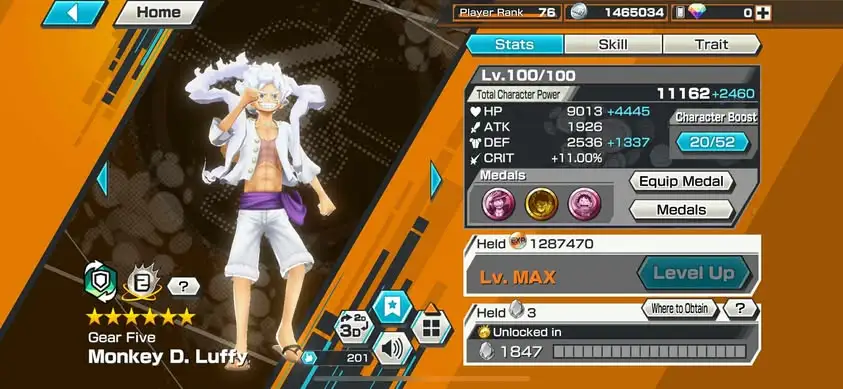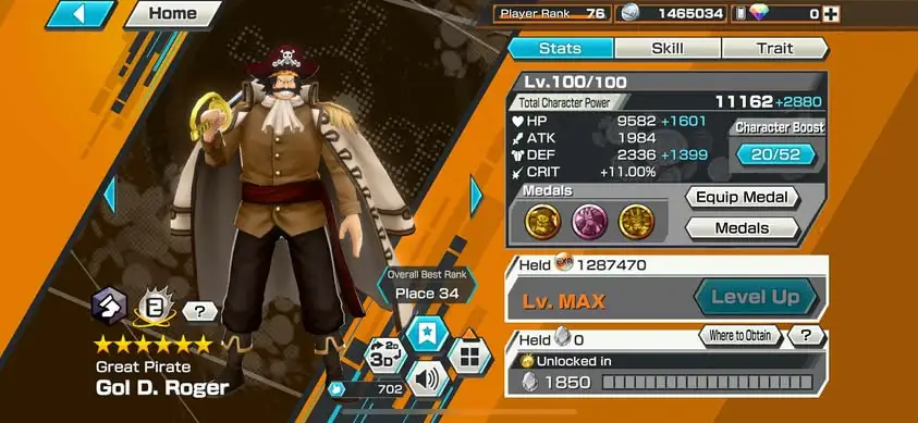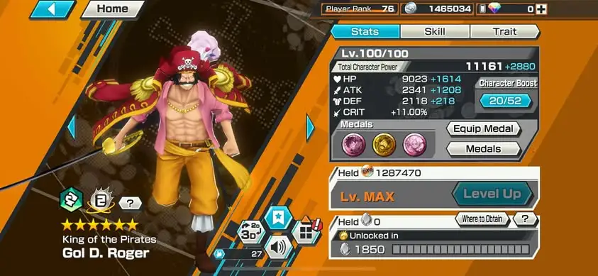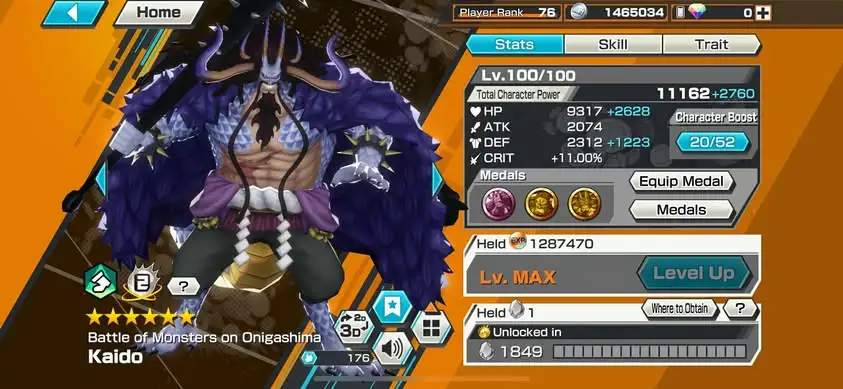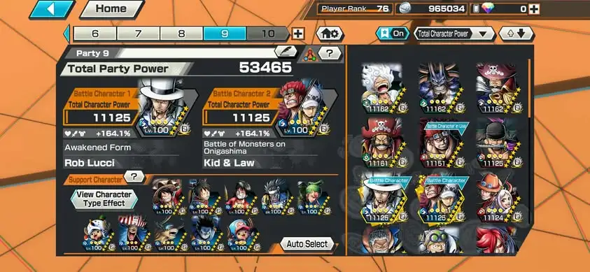 [3387][IOS+ANDROID] 9 EX MAX / HB 72 / Garp + Lucci + 2 Roger + Luffy G5 + Kid LAw + Ace Yamato + Zoro + Kaido , Many Good BFs , Support 166% , Good Medal